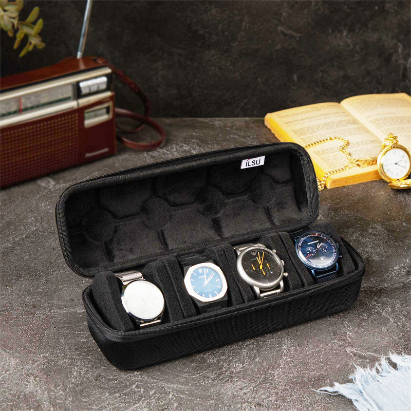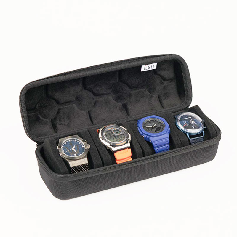 4 ساعات يد فى حالة السفر ، صندوق منظم تخزين صندوق تخزين محمول لحقيبة حمل الساعة المحمولة للرجال والنساء مع وسائد رغوية ناعمة تناسب جميع الساعات ذات الأحجام حتى 60 مم‏