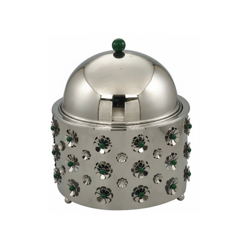 أضف لمسة من الأناقة إلى تجربة تناول الطعام الخاصة بك مع سخان الطعام ، المصمم للحفاظ على دفء أطباقك بينما يعزز من جمالية طاولتك. يتميز بتشطيب فضي أنيق مع لمسات ذهبية زهرية، يمزج هذا السخان المصنوع بشكل جميل بين الأناقة الخالدة والوظائف الحديثة، مما يجعله مثالياً إضافة إلى أي تجمع أو مناسبة خاصة.