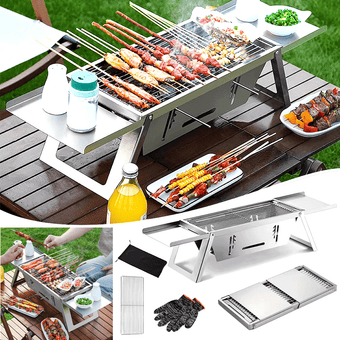 شواية باربيكيو محمولة قابلة للطي، رف شواء صغير للتخييم من الفولاذ المقاوم للصدأ للاستخدام في الهواء الطلق، شوايات منزلية سميكة على الطاولة