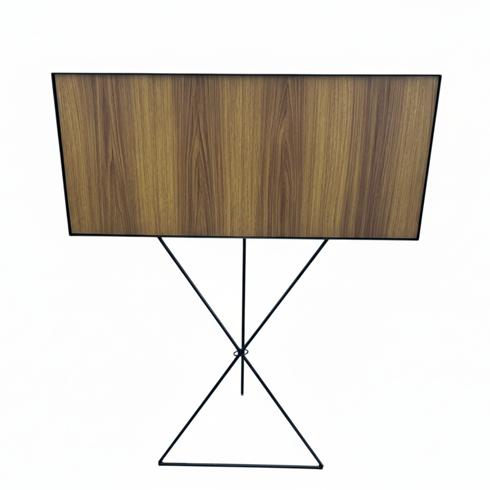أضف لمسة من الأناقة العصرية إلى منزلك أو مكتبك مع الطاولة المعدنية ذات السطح الخشبي بتصميمها الهندسي الفريد.