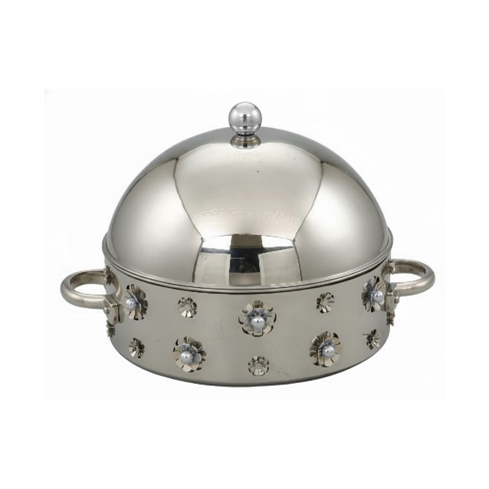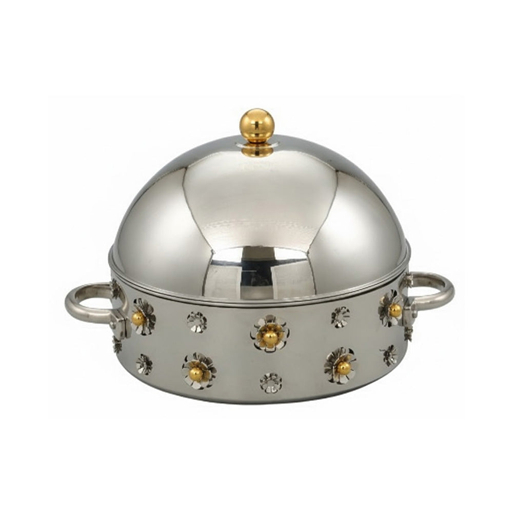 تمتع بتجربة تقديم الطعام الفاخرة مع هذه الكاسارولة المعدنية المصممة بأناقة، والتي تجمع بين الجمال والعملية في كل تفاصيلها. تتميز الكاسارولة بحجمها المثالي للحفاظ على حرارة الطعام لفترة طويلة، وهي متاحة بعدة أحجام لتناسب احتياجاتك: