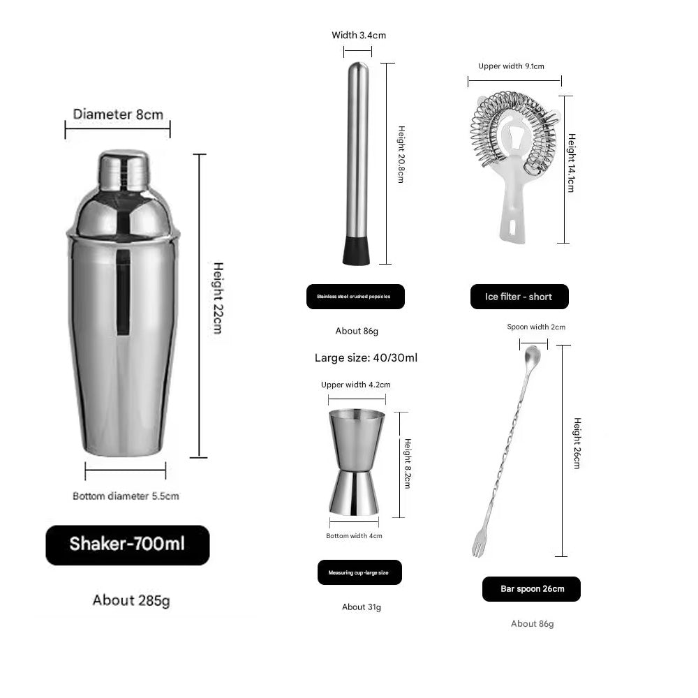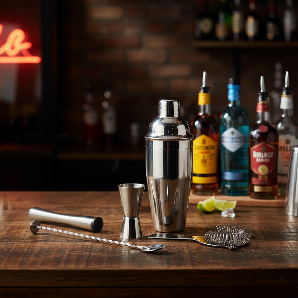 ارتقِ بتجربة بار منزلك مع طقم شاكر الكوكتيلات المصنوع من الفولاذ المقاوم للصدأ، والمكون من خمس قطع. صُمم هذا الطقم للمبتدئين والمحترفين في تحضير الكوكتيلات، ويتضمن كل ما تحتاجه لتحضير كوكتيلات مثالية بأناقة ودقة. مصنوع من الفولاذ المقاوم للصدأ عالي الجودة، كل قطعة متينة ومقاومة للصدأ وسهلة التنظيف، مما يضمن استخدامًا يدوم طويلًا. بفضل لمسته النهائية الأنيقة والمصقولة، يُعد هذا الطقم إضافة لا غنى عنها لأي بار.