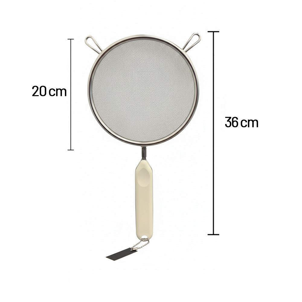 الميزات: شبكة دقيقة، حافة متينة، فتحة تعليق، وخطافان