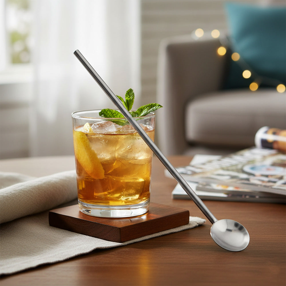 مصنوعة من الفولاذ المقاوم للصدأ عالي الجودة، وهي متينة ومقاومة للصدأ وقابلة لإعادة الاستخدام، مما يساعد على تقليل النفايات البلاستيكية. يضمن سطحها الأملس المصقول الراحة أثناء الشرب، كما أن تصميم الملعقة المدمج يجعلها مثالية لتقليب السكر أو الكريمة أو خلط المكونات في أكواب طويلة.