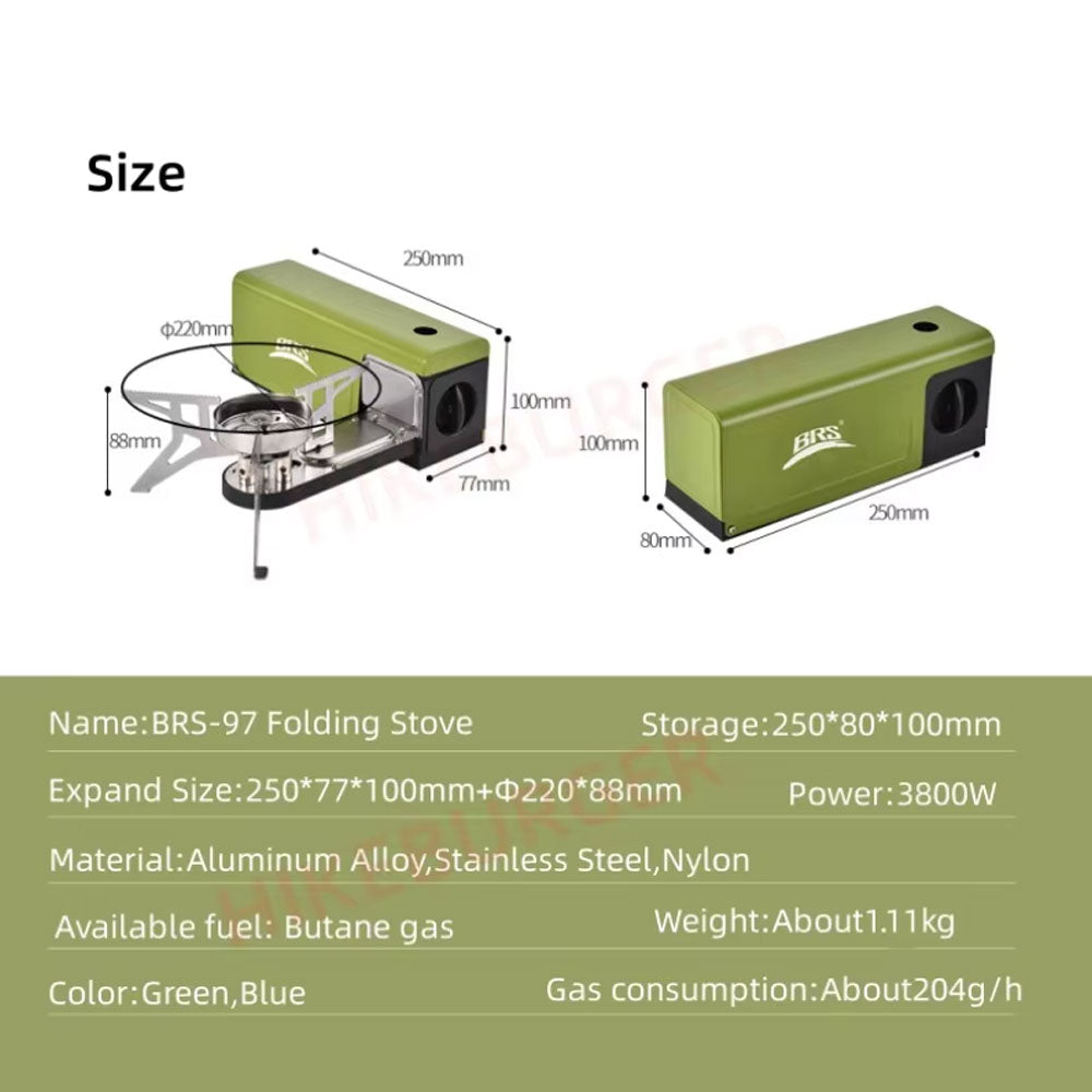 موقد غاز كاسيت محمول قابل للطي BRS-97 للرحلات والتخييم بقوة 3800 واط