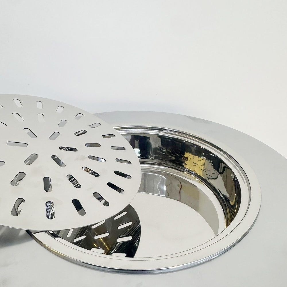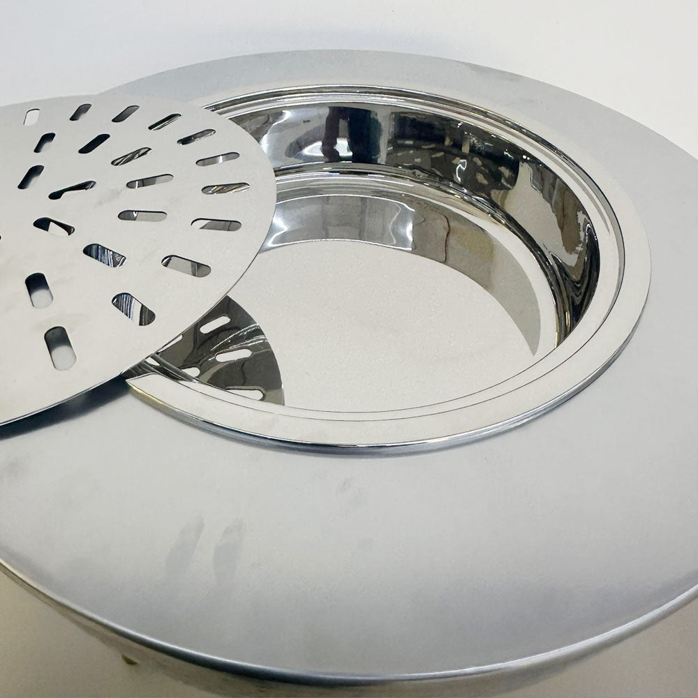 استمتع بتجربة شواء مميزة في الهواء الطلق أو داخل المنزل مع هذه الشواية المعدنية الفاخرة المصممة لتجمع بين الجمال والعملية.