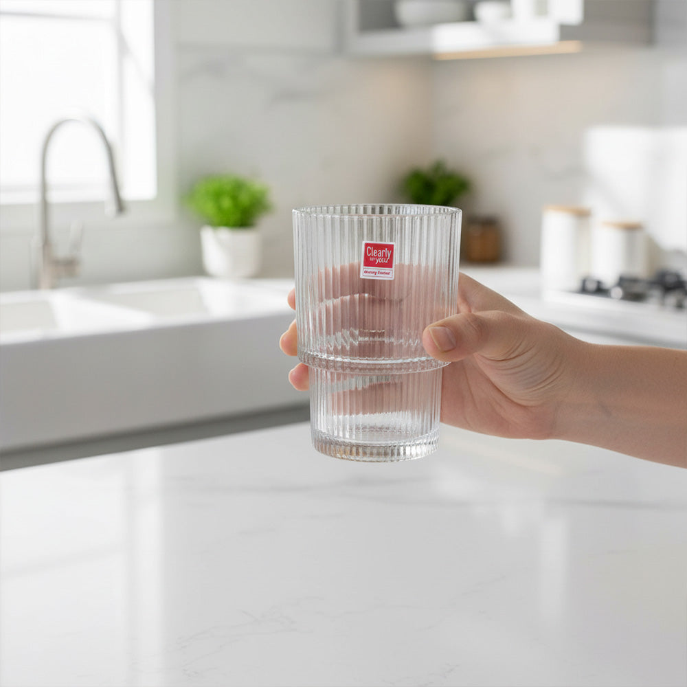 قدّم مشروباتك بأسلوب عصري مع كوب الشرب الكريستالي المضلع هذا. يتميز هذا الكوب بتصميمه الأنيق ذي الملمس المضلع العمودي، ويجمع بين التصميم العصري والعملية اليومية. بسعة 470 مل، يُعد هذا الكوب مثاليًا للمياه والعصائر والقهوة المثلجة والكوكتيلات. يضمن تصميمه الزجاجي المتين والشفاف وضوحًا ومتانة يدومان طويلًا، بينما يوفر سطحه المزخرف قبضة أنيقة ومريحة. يبلغ ارتفاعه 13 سم وقطره 8.5 سم، وهو مثالي للمناسبات الرسمية وغير الرسمية.