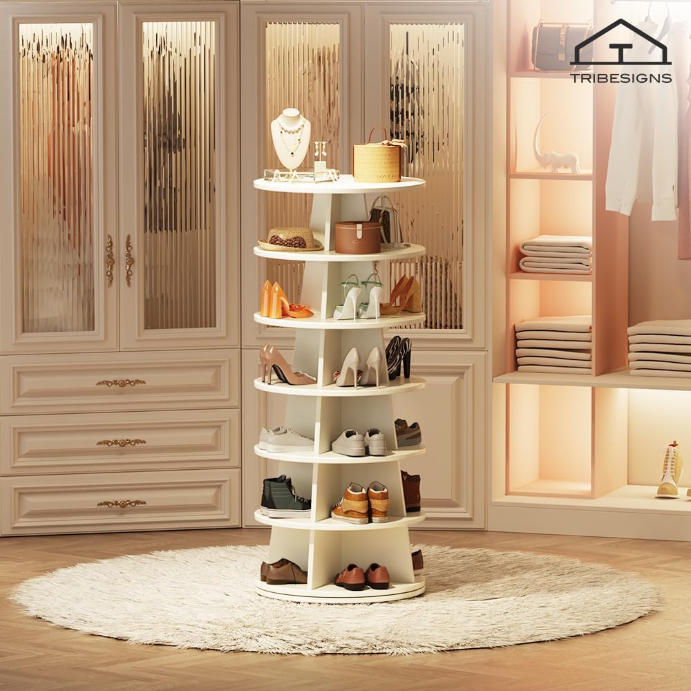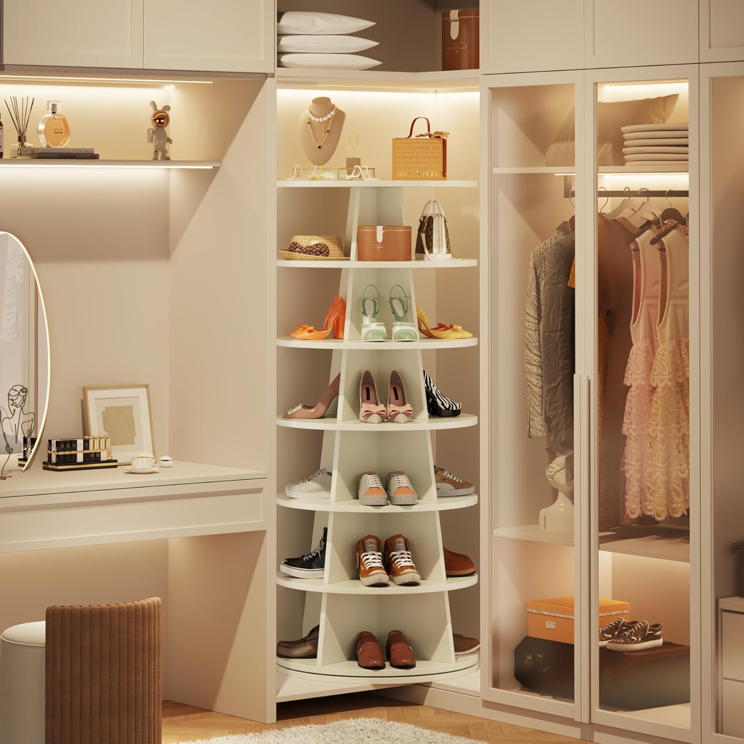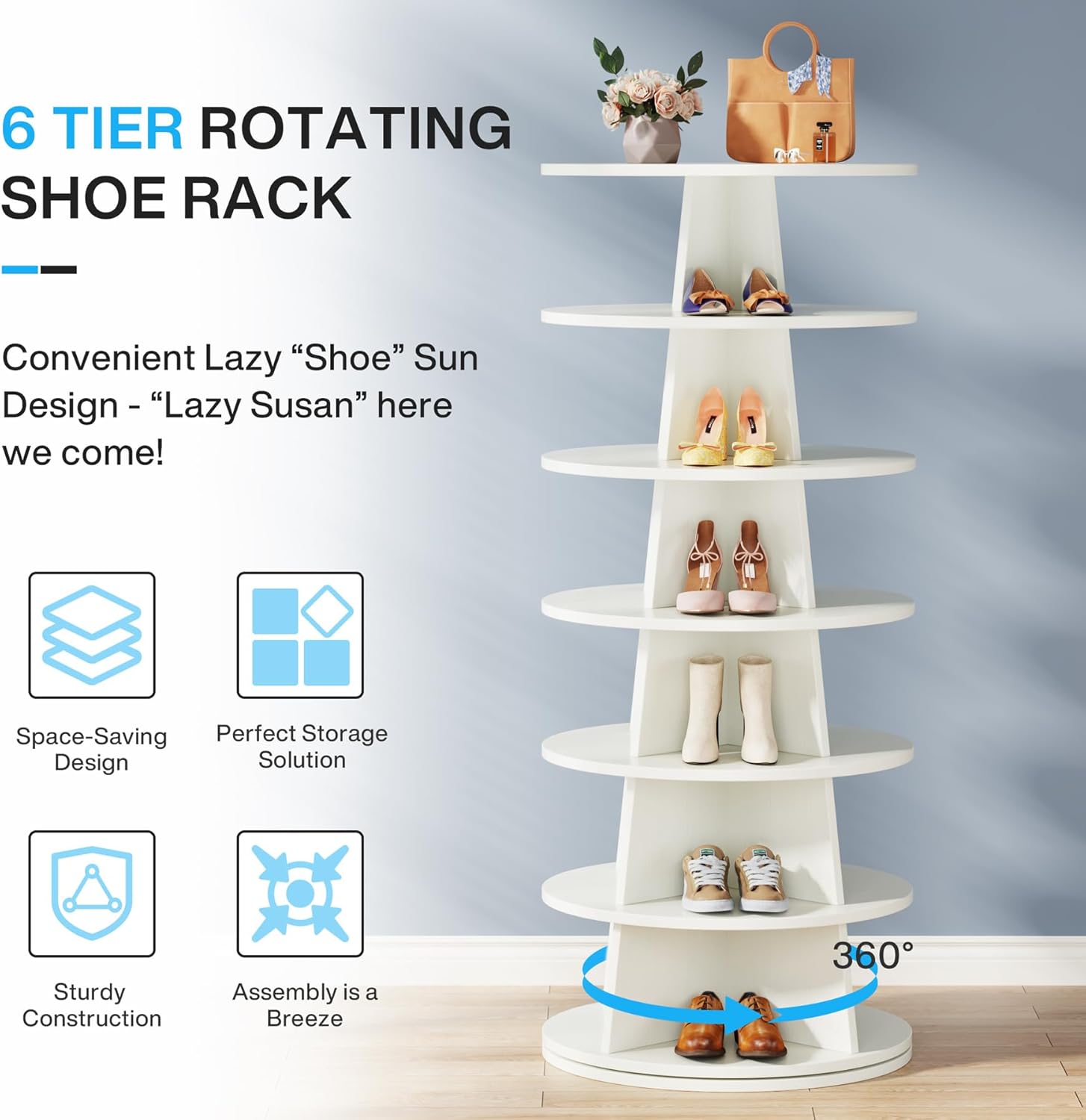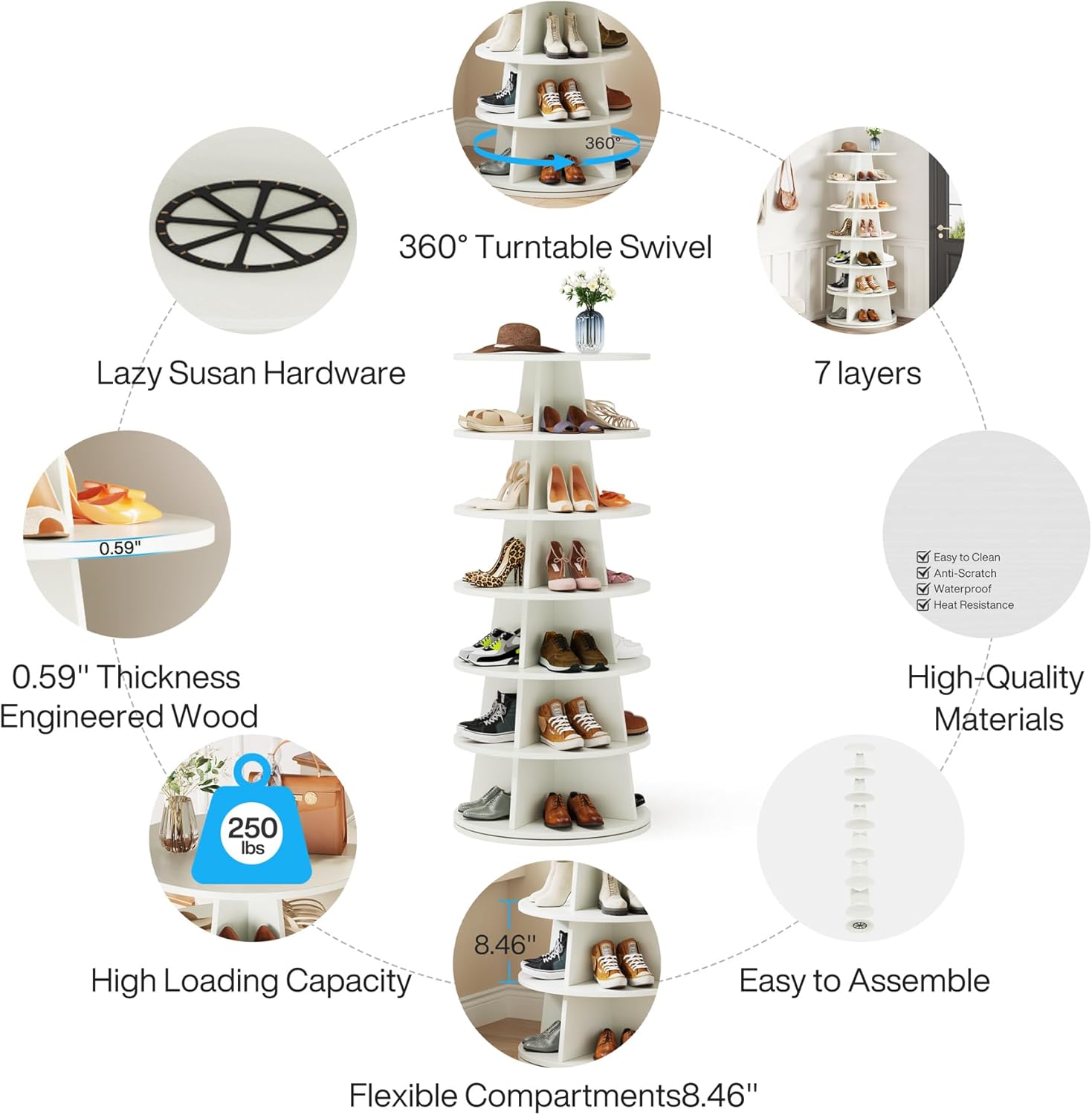 رف هرمي للأحذية وحقائب شخصية 7 رفوف دوار 360 درجة: الحل الأمثل لاحتياجات تخزين الأحذية الخاصة بك. لا يوفر برج الأحذية هذا الوظائف فحسب، بل يضيف مظهره الفاخر لمسة من الأناقة إلى أي مدخل أو خزانة. رف أحذية متعدد الوظائف: يحتوي منظم الأحذية على مساحة تخزين كبيرة لأحذيتك وكعبك العالي والأحذية الرياضية وغيرها من العناصر. إنه أيضًا مكان ممتاز لتخزين العناصر العادية مثل الكتب وألبومات الصور والنباتات والأجهزة الأخرى حل تخزين الأحذية: هذا البرج الموفر للمساحة قادر على استيعاب الكثير من الأحذية ، مما يحافظ على مجموعتك مرتبة في جميع الأوقات مع توفير مساحة مطلوبة بشدة في خزانتك أو مدخلك أو غرفة نومك وما إلى ذلك متانة طويلة الأمد: مصنوع من ألواح خشبية MDF قوية ومدعوم بمحامل كروية معدنية دوارة، يوفر رف الأحذية هذا المتانة والاستقرار الذي سيدوم لسنوات قادمة. سهل التجميع: كل قطعة مُسمَّى بحرف أو رقم، وتعليماتنا خطوة بخطوة تجعل التجميع سهلاًمما يسمح لك بإعداده وجاهز للاستخدام في وقت قصير.
