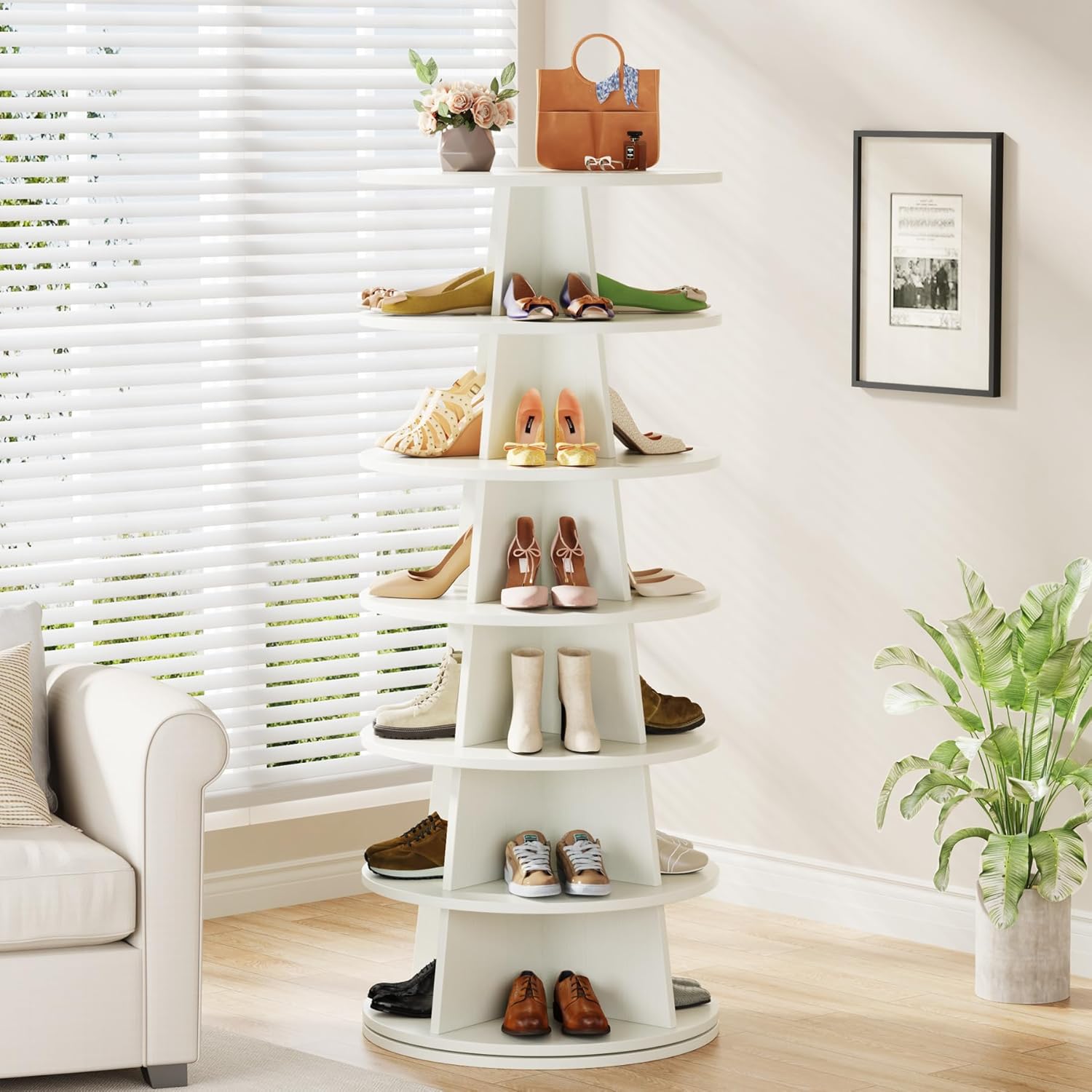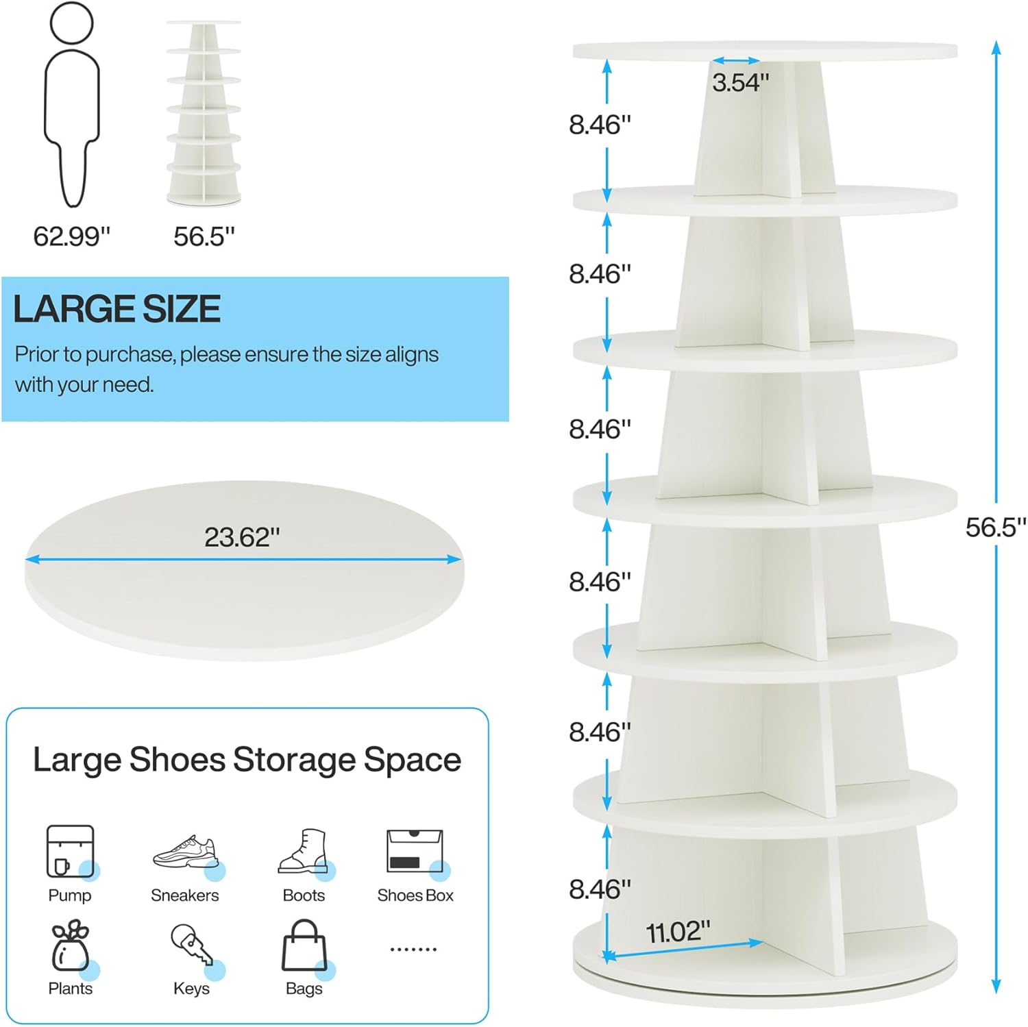 برج رفوف الأحذية والحقائب والأكسسوارات الدوارة الهرمي من بوكس برو ، رف أحذية دوار مكون من 7 رفوف ، منظم رفوف أحذية دوار 360 درجة للخزانة، عرض دائري لتخزين الأحذية وتنظيم الخزانةعن هذه السلعة