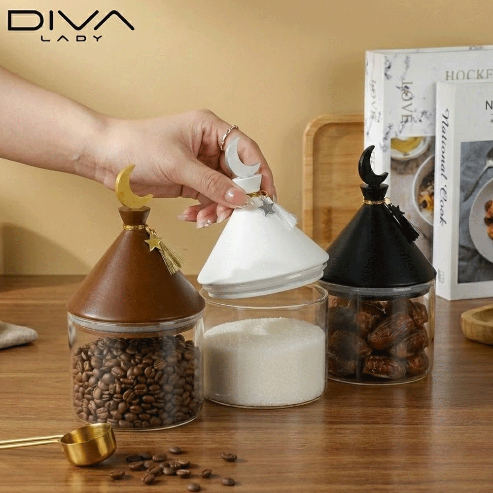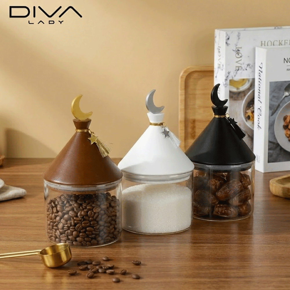 لأن التنظيم يمكن أن يكون أنيقًا أيضًا، تقدّم لك DIVA LADY برطمان تخزين زجاجي بتصميم فريد يجمع بين العملية واللمسة الجمالية الراقية، ليكون قطعة ديكور قبل أن يكون أداة تخزين.
