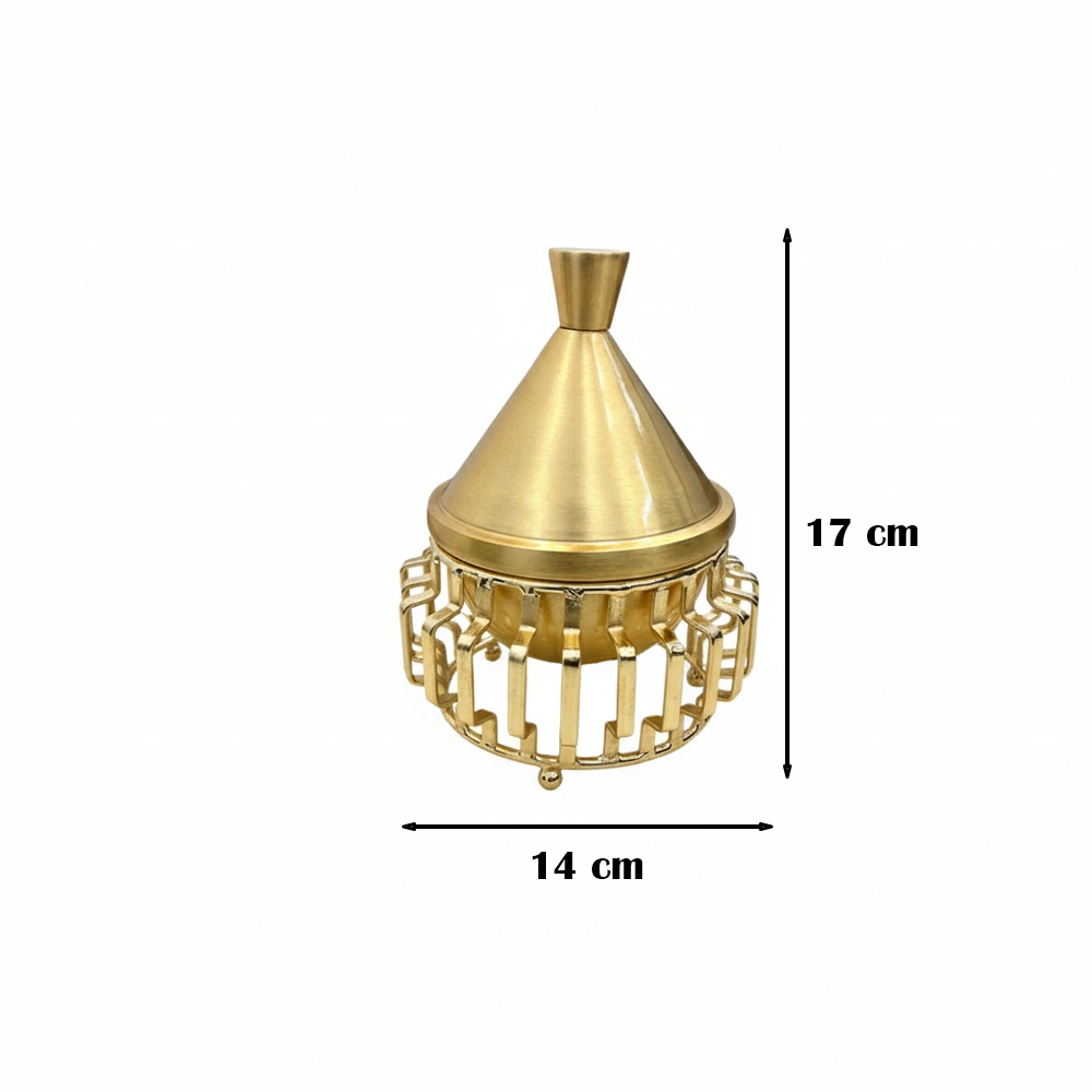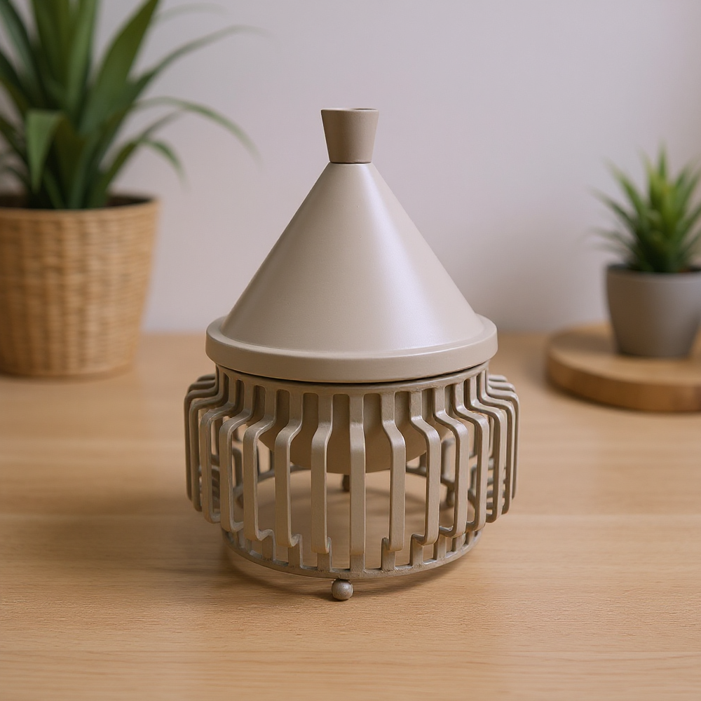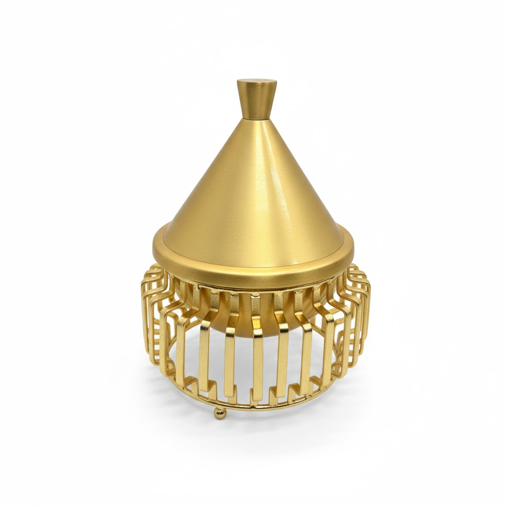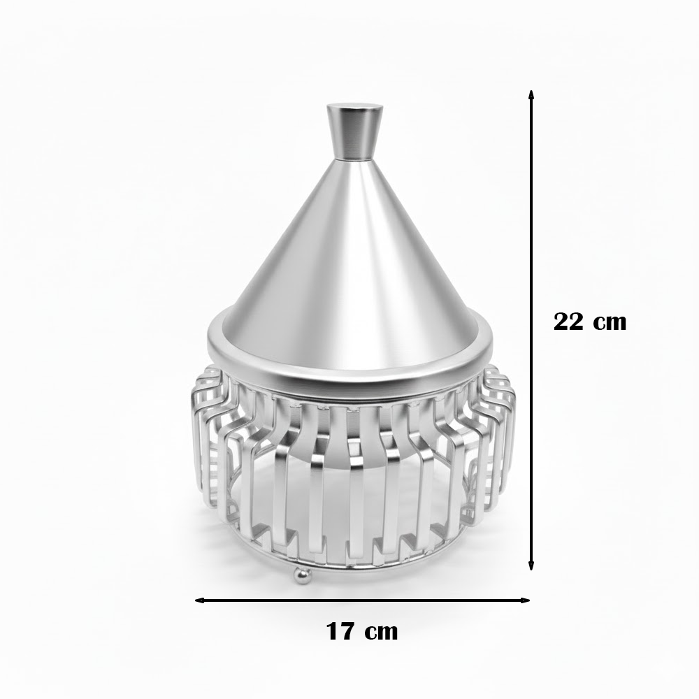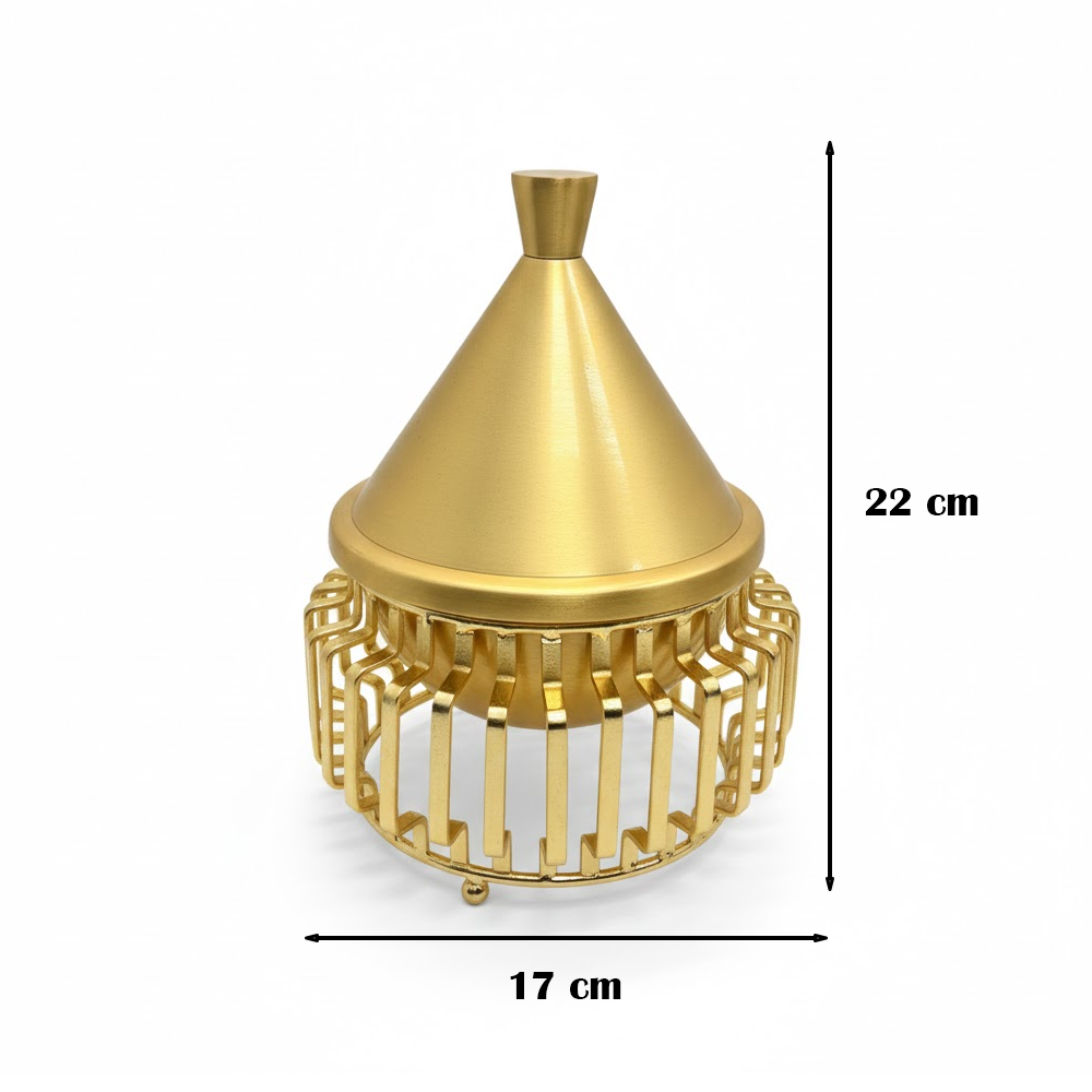صممت هذه التمرية لتجمع بين عبق التراث العربي والتصميم المودرن الأنيق، حيث تتميز بقاعدة معدنية بتصميم هندسي فريد وغطاء مخروطي يمنحها مظهراً استثنائياً في جميع مناسباتكم وجمعاتكم.