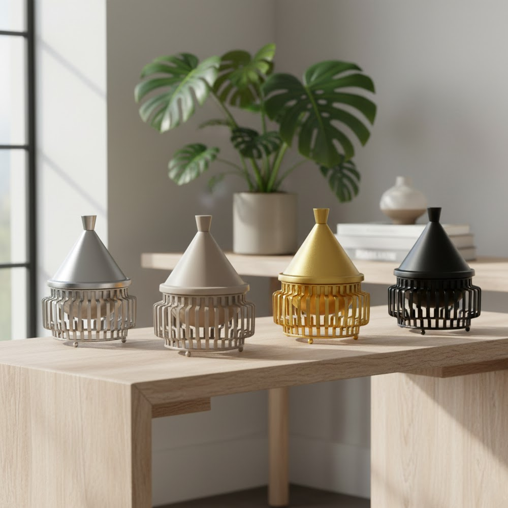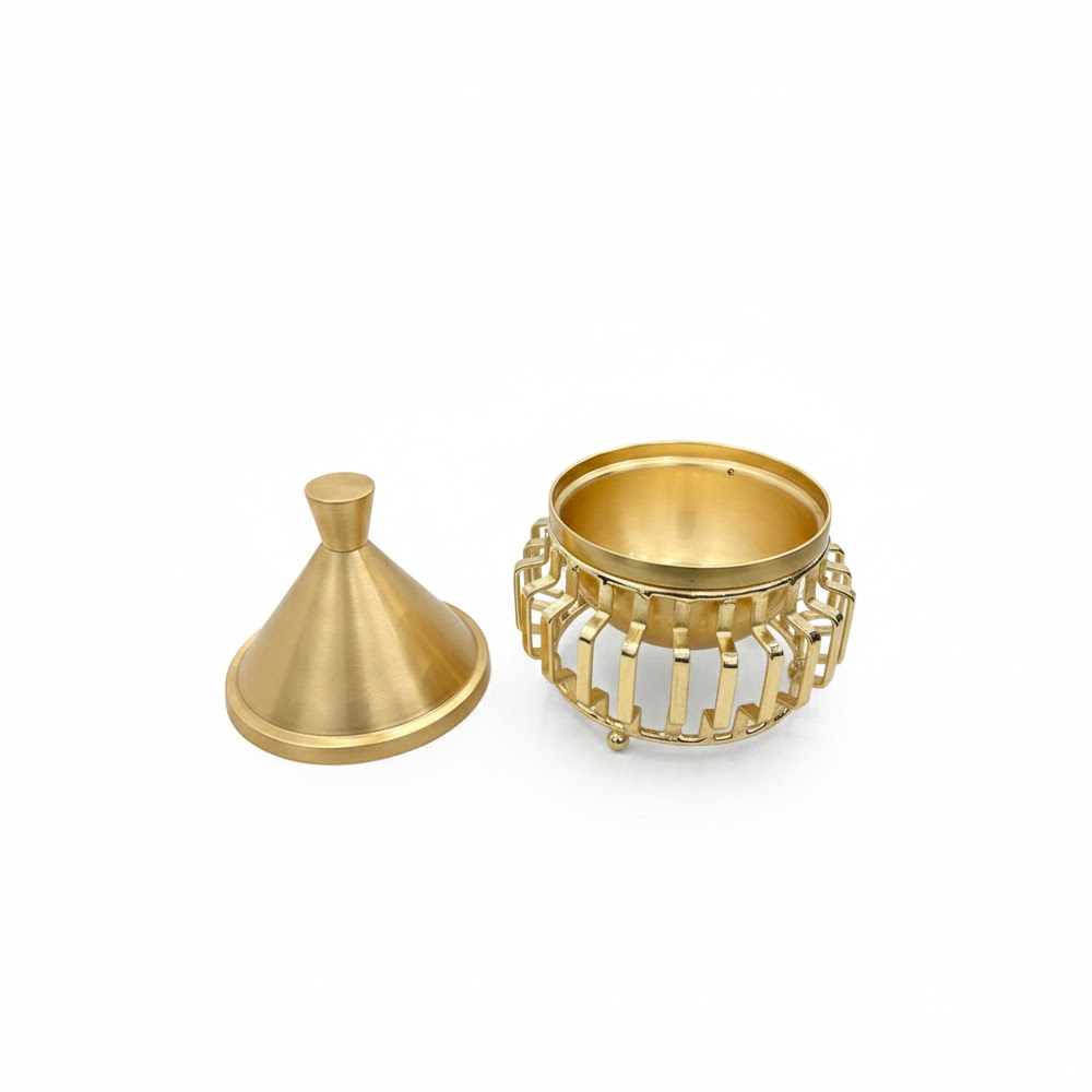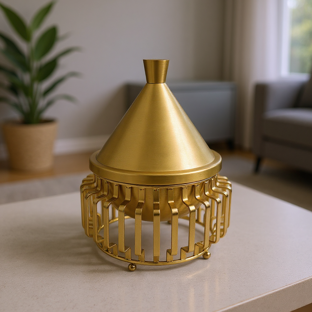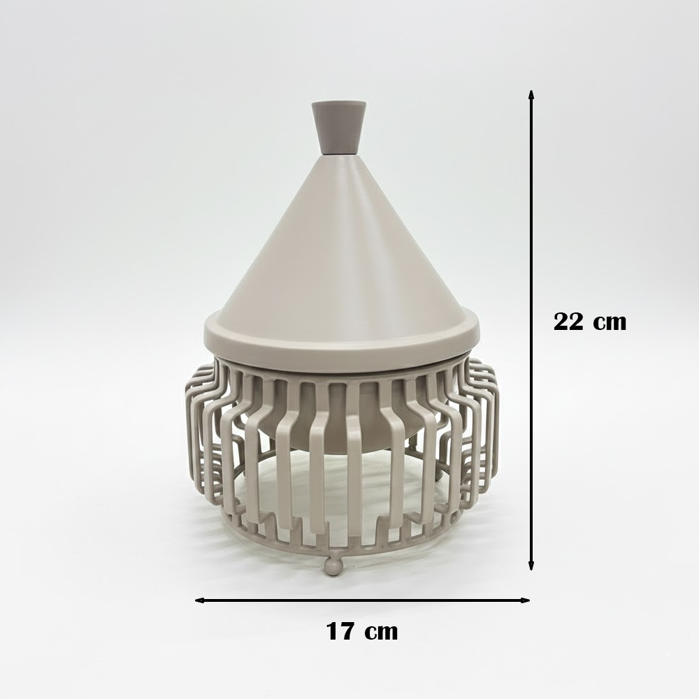 صممت هذه التمرية لتجمع بين عبق التراث العربي والتصميم المودرن الأنيق، حيث تتميز بقاعدة معدنية بتصميم هندسي فريد وغطاء مخروطي يمنحها مظهراً استثنائياً في جميع مناسباتكم وجمعاتكم.