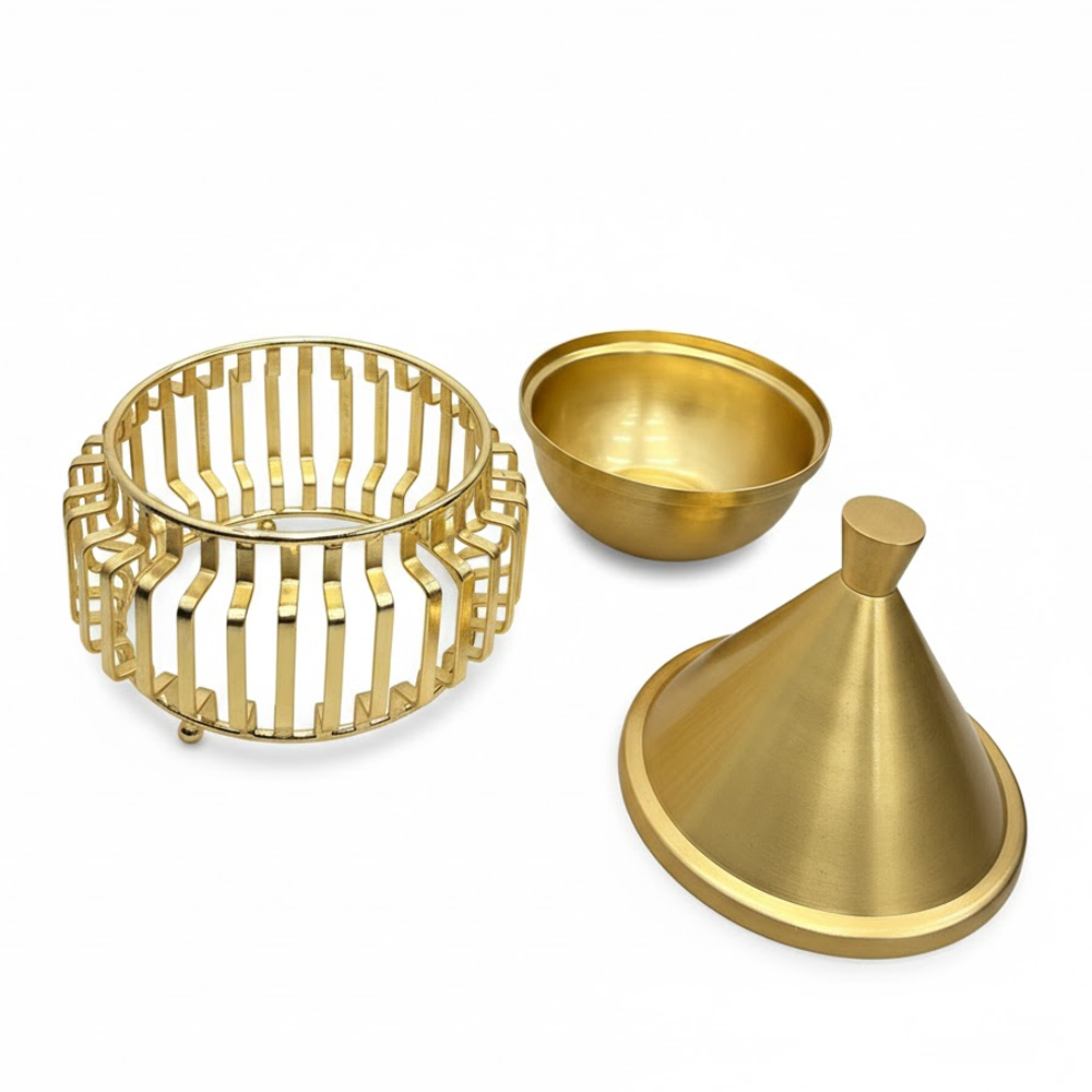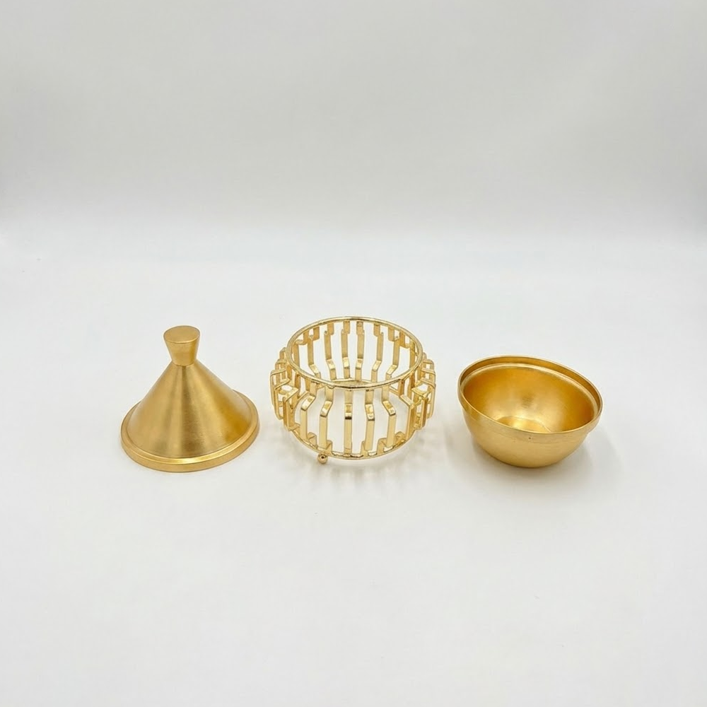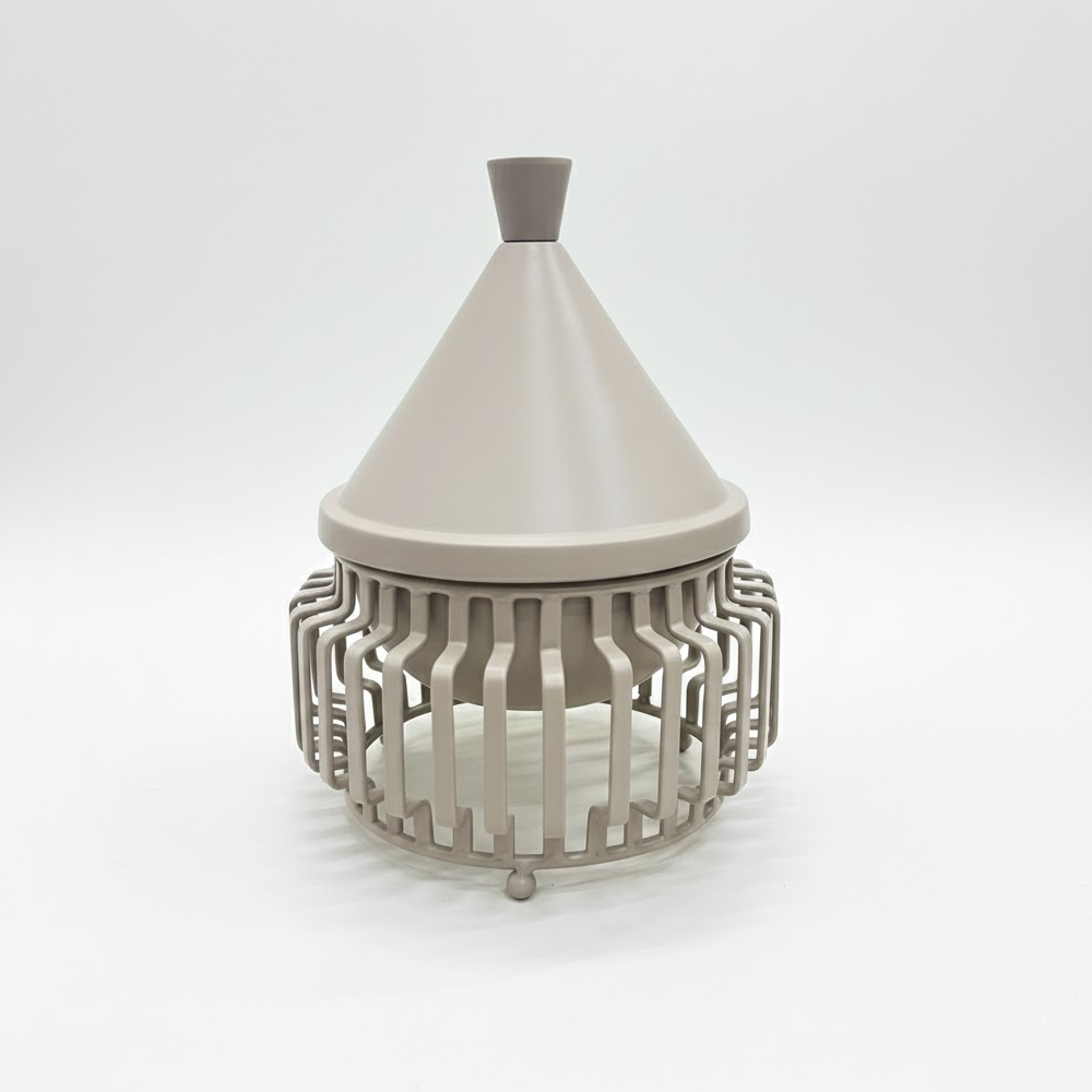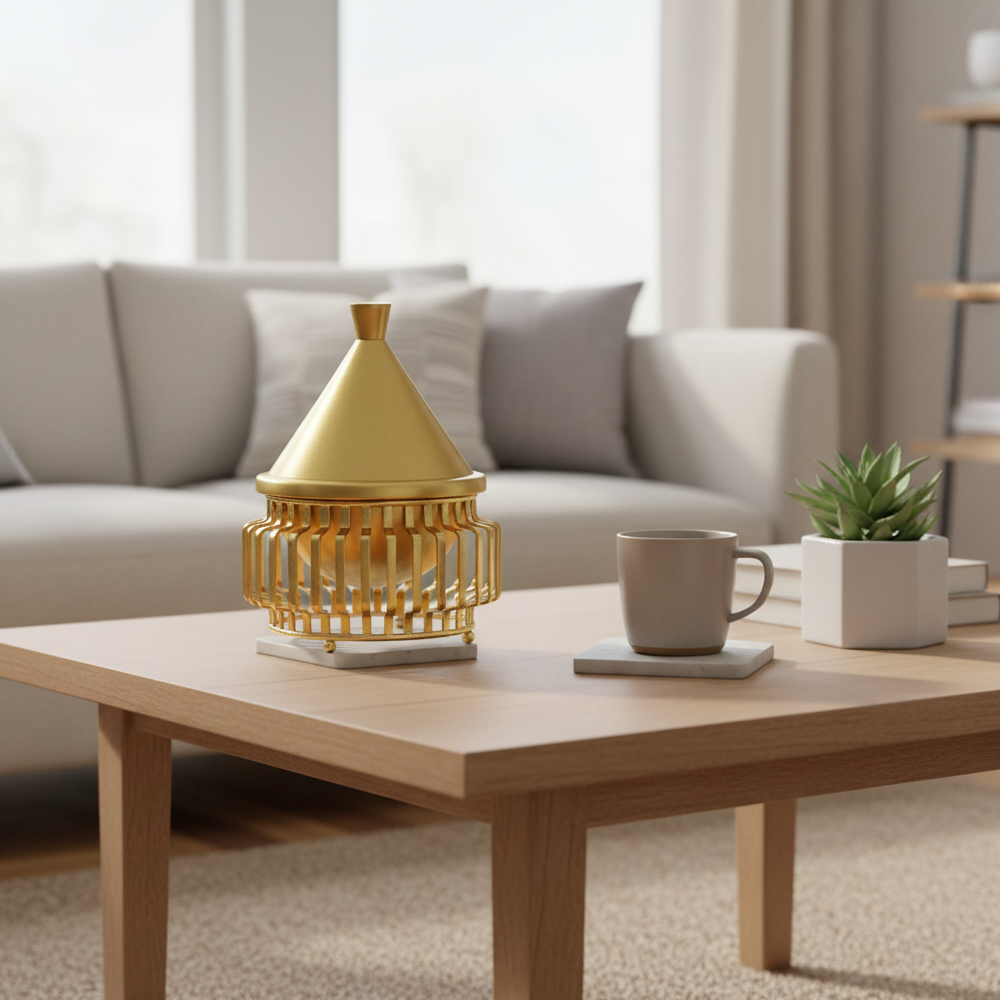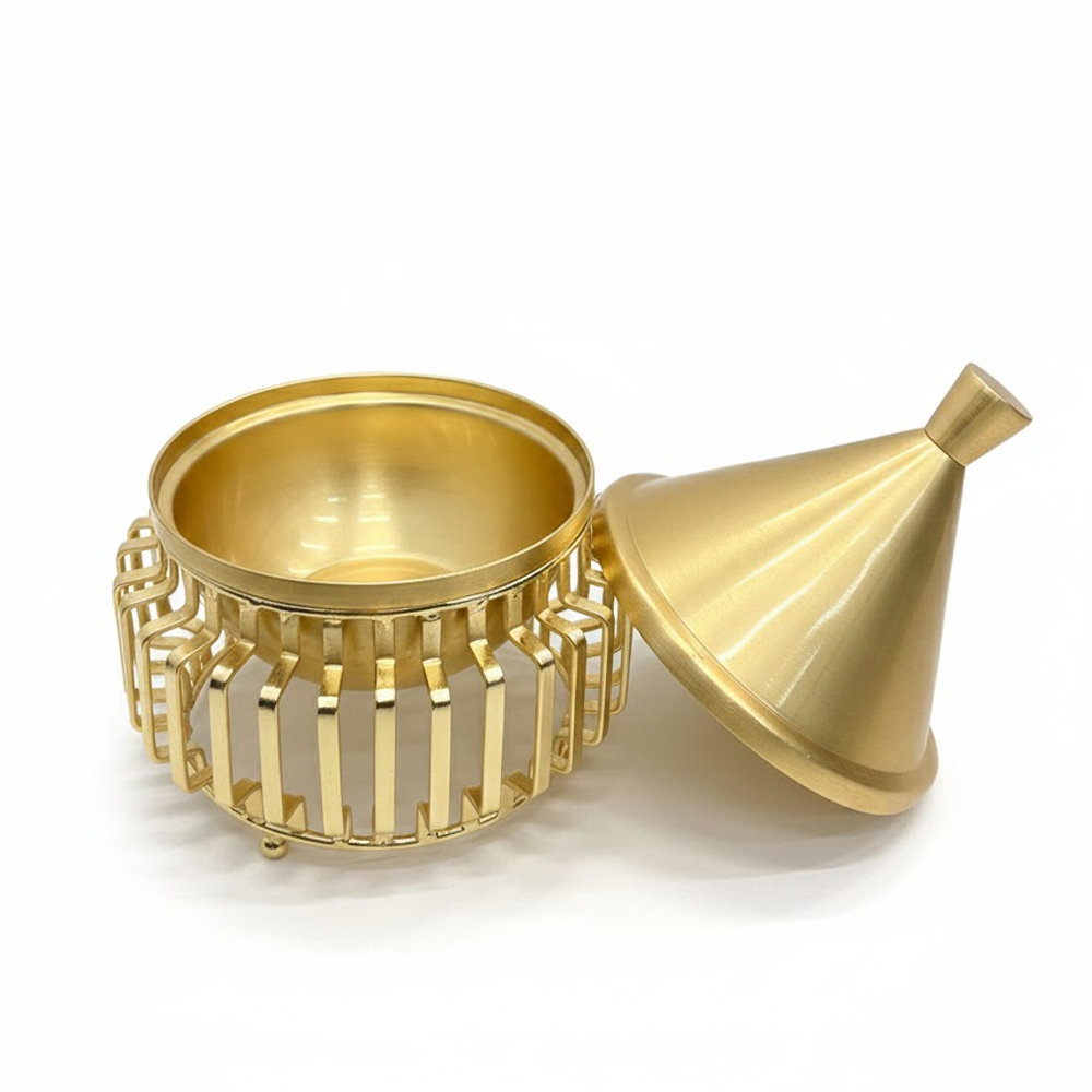 صممت هذه التمرية لتجمع بين عبق التراث العربي والتصميم المودرن الأنيق، حيث تتميز بقاعدة معدنية بتصميم هندسي فريد وغطاء مخروطي يمنحها مظهراً استثنائياً في جميع مناسباتكم وجمعاتكم.