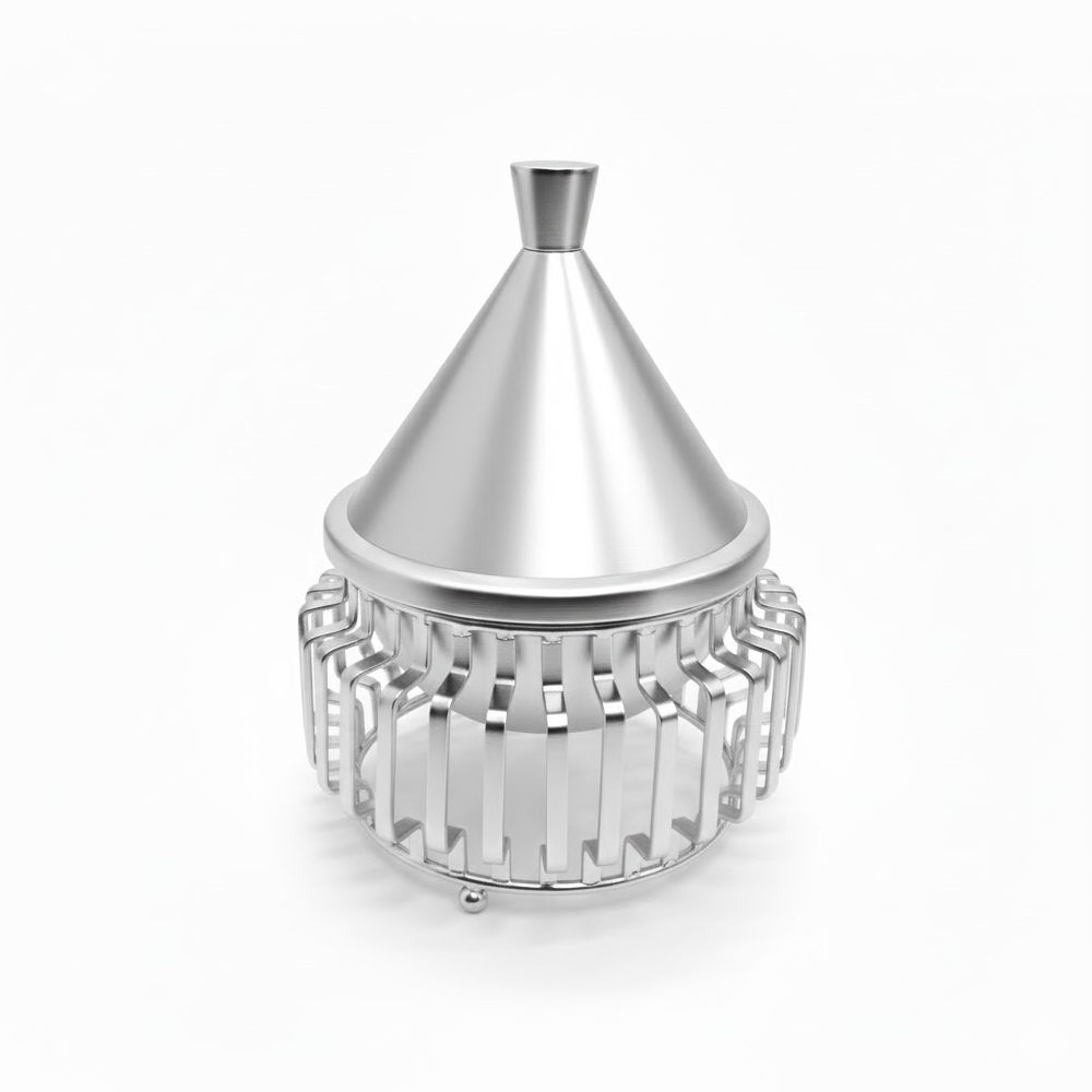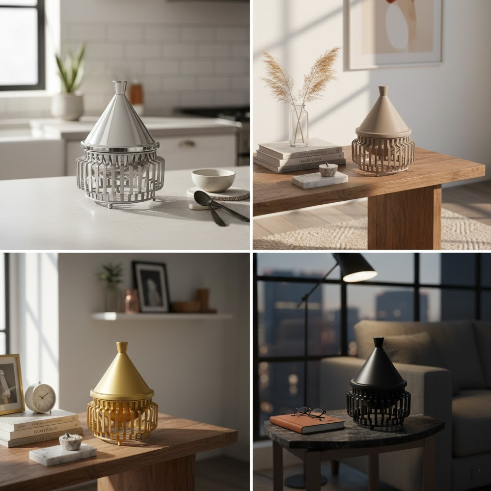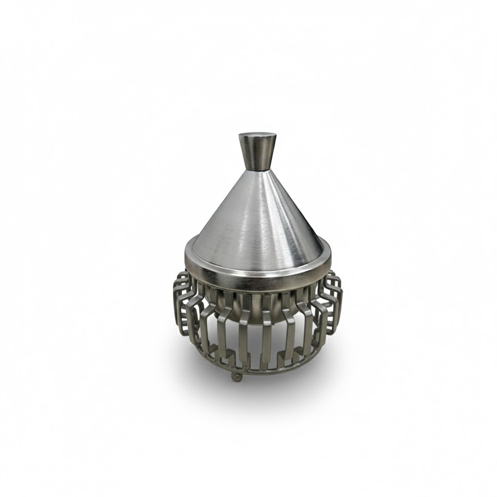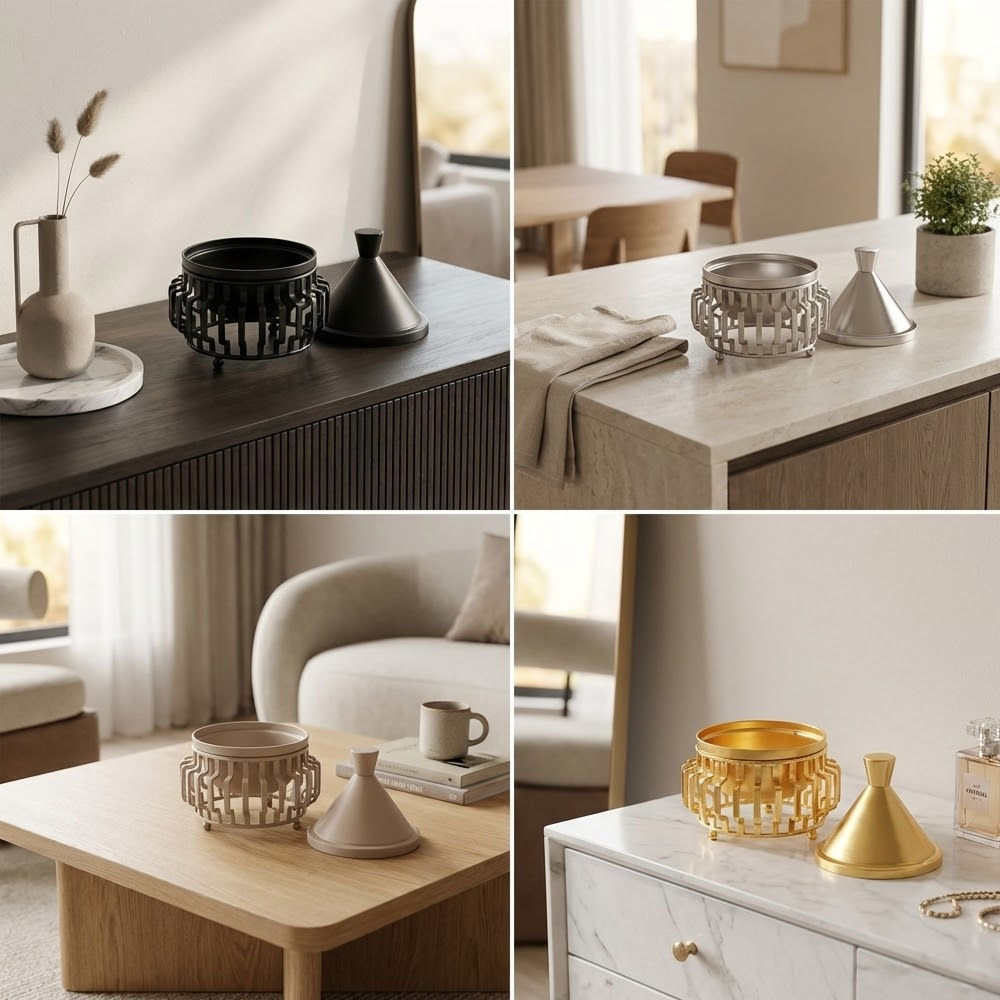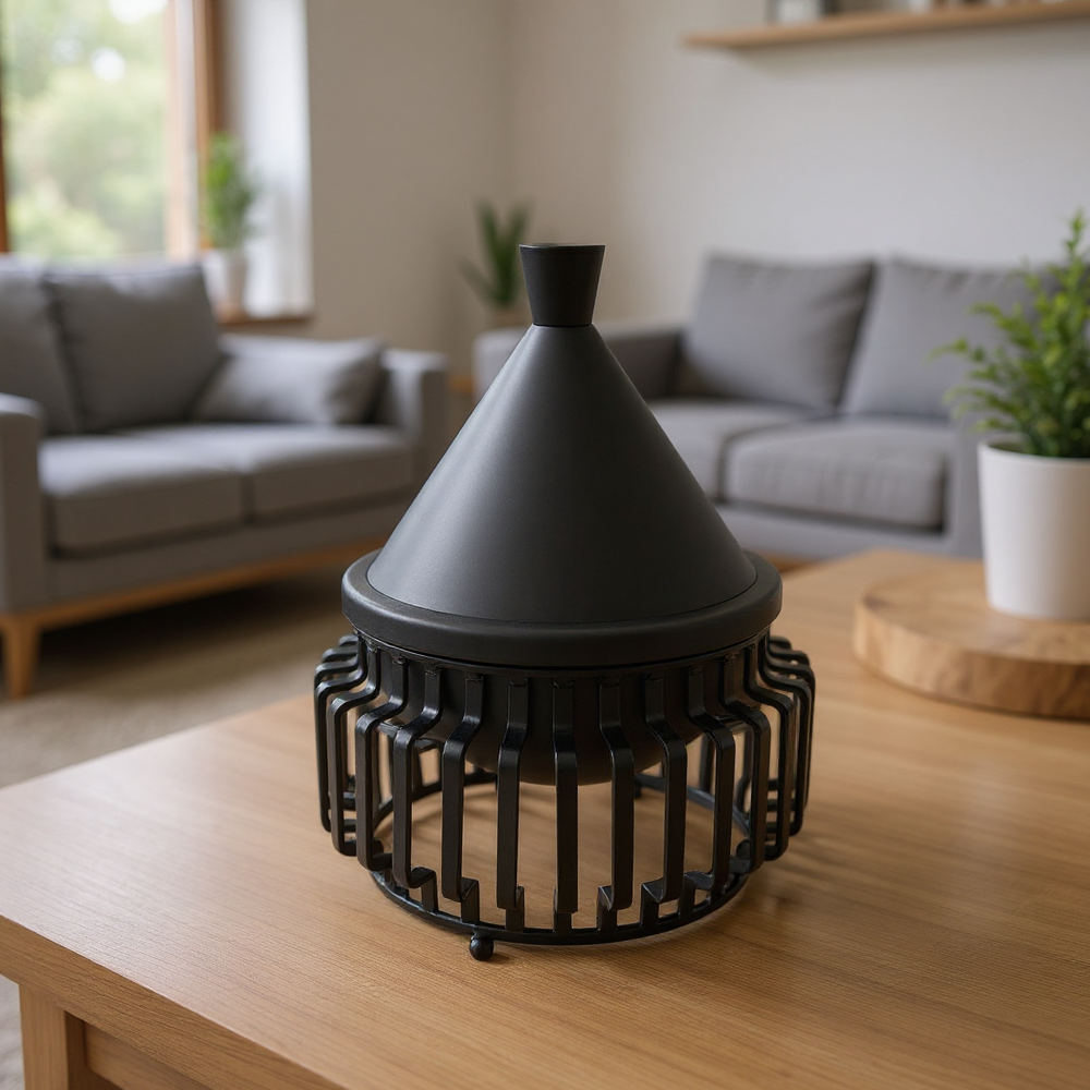صممت هذه التمرية لتجمع بين عبق التراث العربي والتصميم المودرن الأنيق، حيث تتميز بقاعدة معدنية بتصميم هندسي فريد وغطاء مخروطي يمنحها مظهراً استثنائياً في جميع مناسباتكم وجمعاتكم.