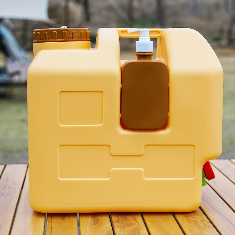 • تصميم عملي يتضمن جرة للماء وعلبة صابون مدمجة. يناسب الطلعات ورحلات التخييم. ما عليك سوى ملء الجرة بالماء وإضافة الصابون إلى العلبة.