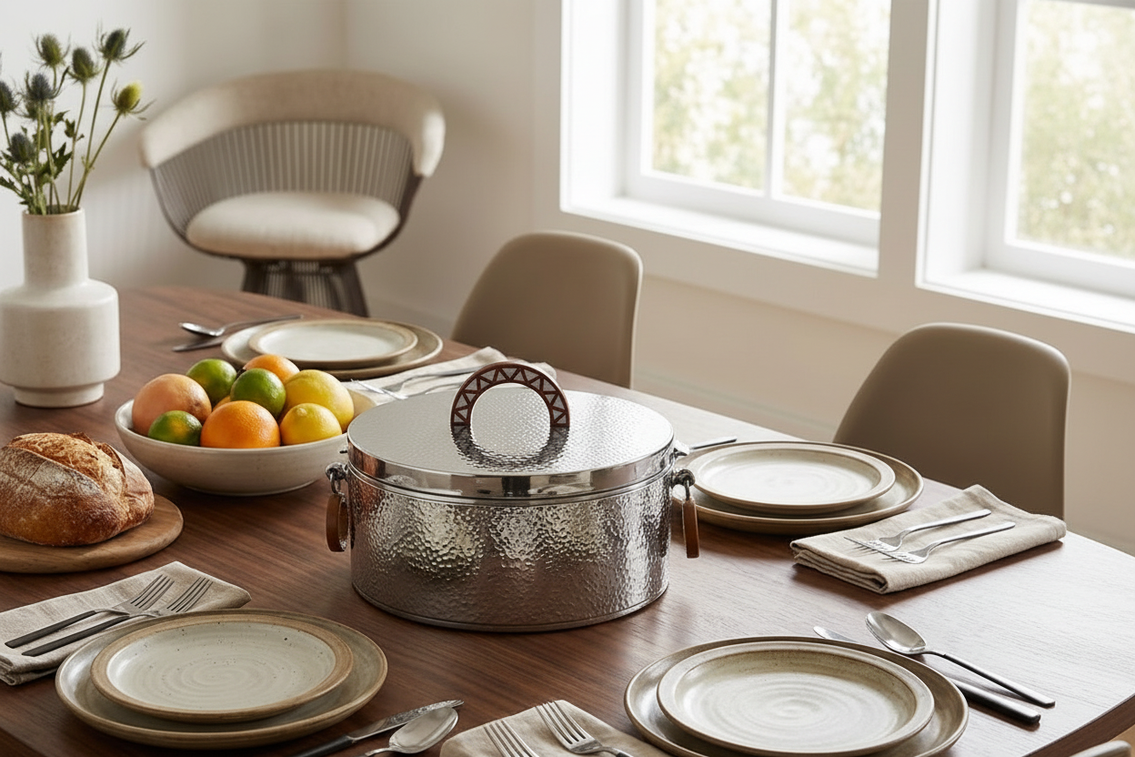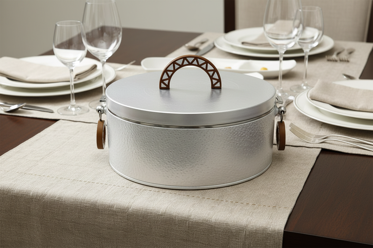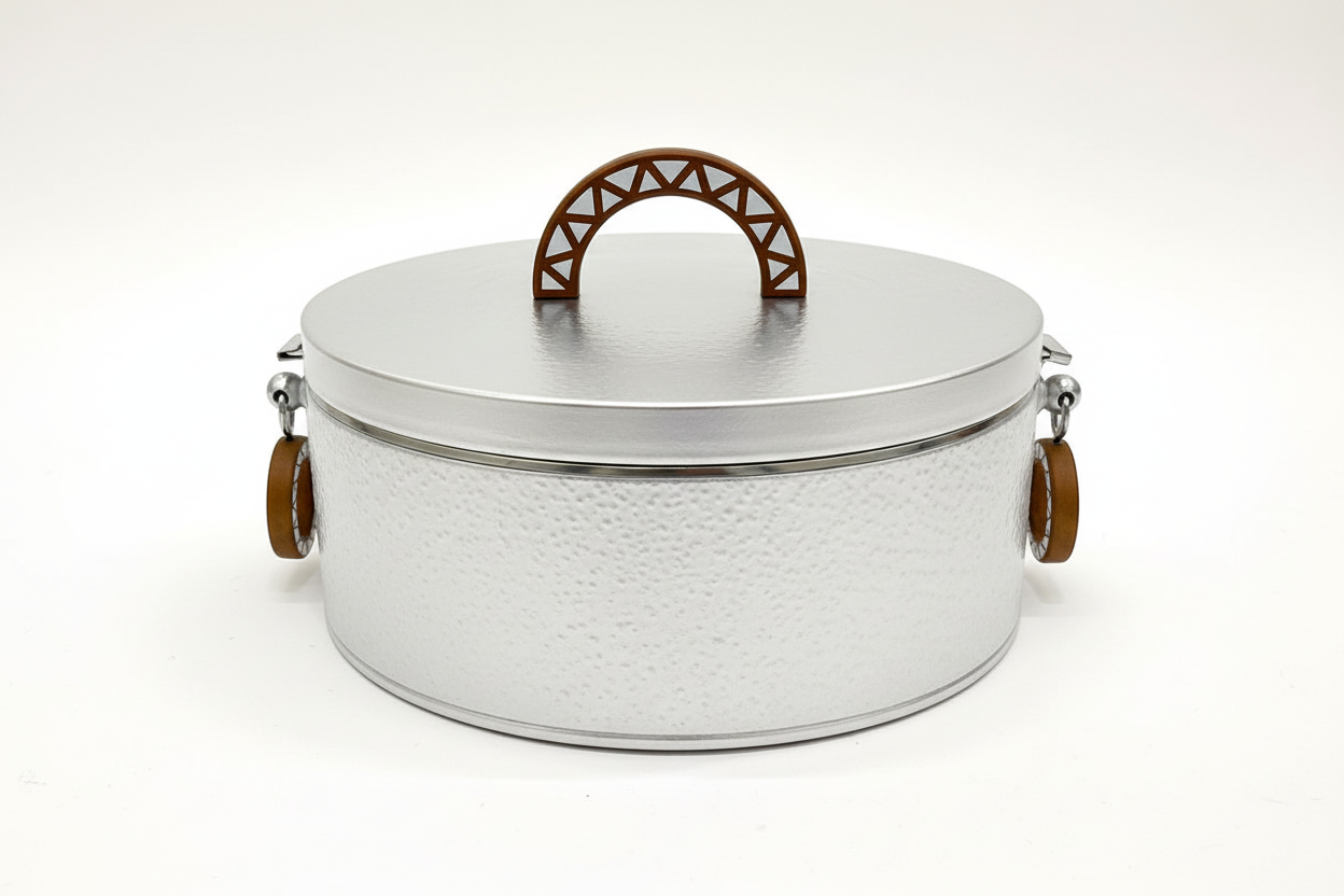تأتي مع غطاء محكم بمقبض مزخرف على شكل قوس وأقفال جانبية محكمة للحفاظ على المحتويات آمنة أثناء النقل. مثالية للتجمعات العائلية، والنزهات، والحفلات، أو للاستخدام اليومي في المطبخ، صُممت هذه الحافظة لتوفير الراحة والمتانة طويلة الأمد.