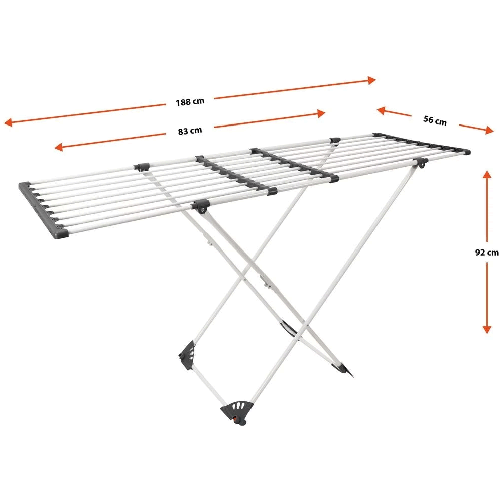 【سعة وقوة】 ستحصل على مساحة تجفيف بطول 188 سم مع قدرة تحمل قصوى تصل إلى 18 كجم، بالإضافة إلى مشابك للجوارب. يستوعب بسهولة جميع أنواع الملابس، من الملابس الرقيقة الصغيرة إلى المفروشات الكبيرة، مما يجعل يوم الغسيل غاية في السهولة.