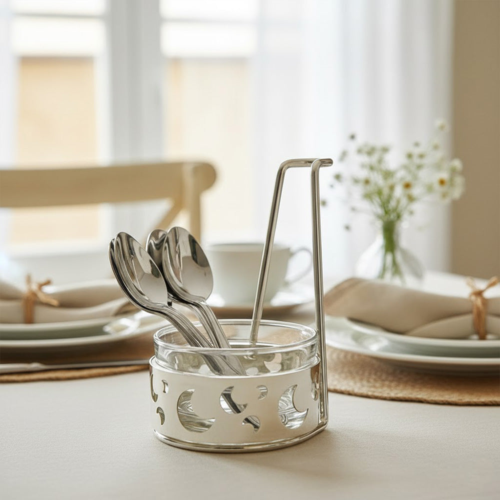 الاستخدام: حامل لتنظيم أدوات المائدة مثل الملاعق والشوك والسكاكين على طاولة الطعام أو في المطبخ.