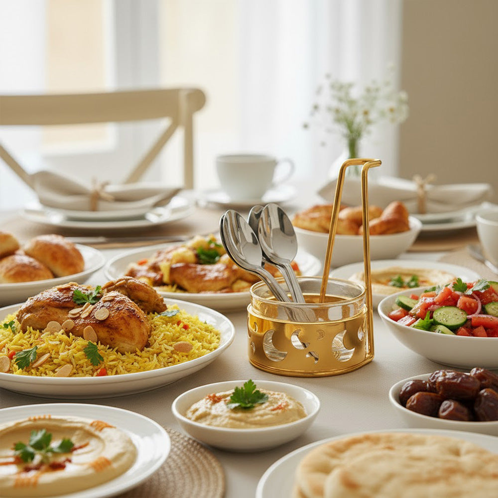 قطعة ديكور عملية تضفي لمسة جمالية وفخمة على مائدة الطعام، وتتميز الطبعة بنقوش الهلال المناسبة للاستخدام في المناسبات مثل شهر رمضان أو الأعياد.
