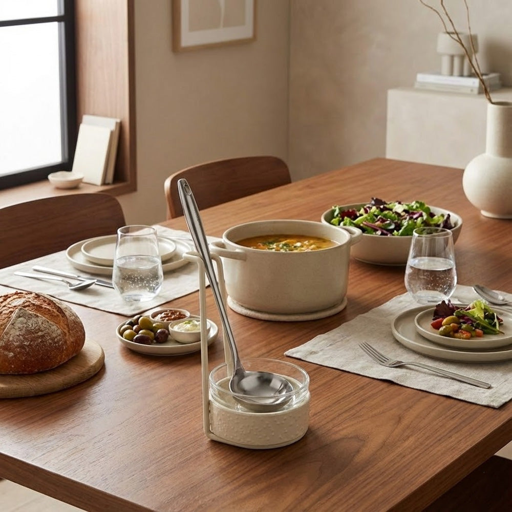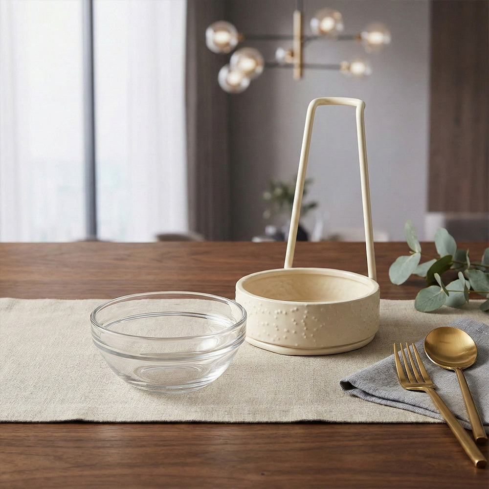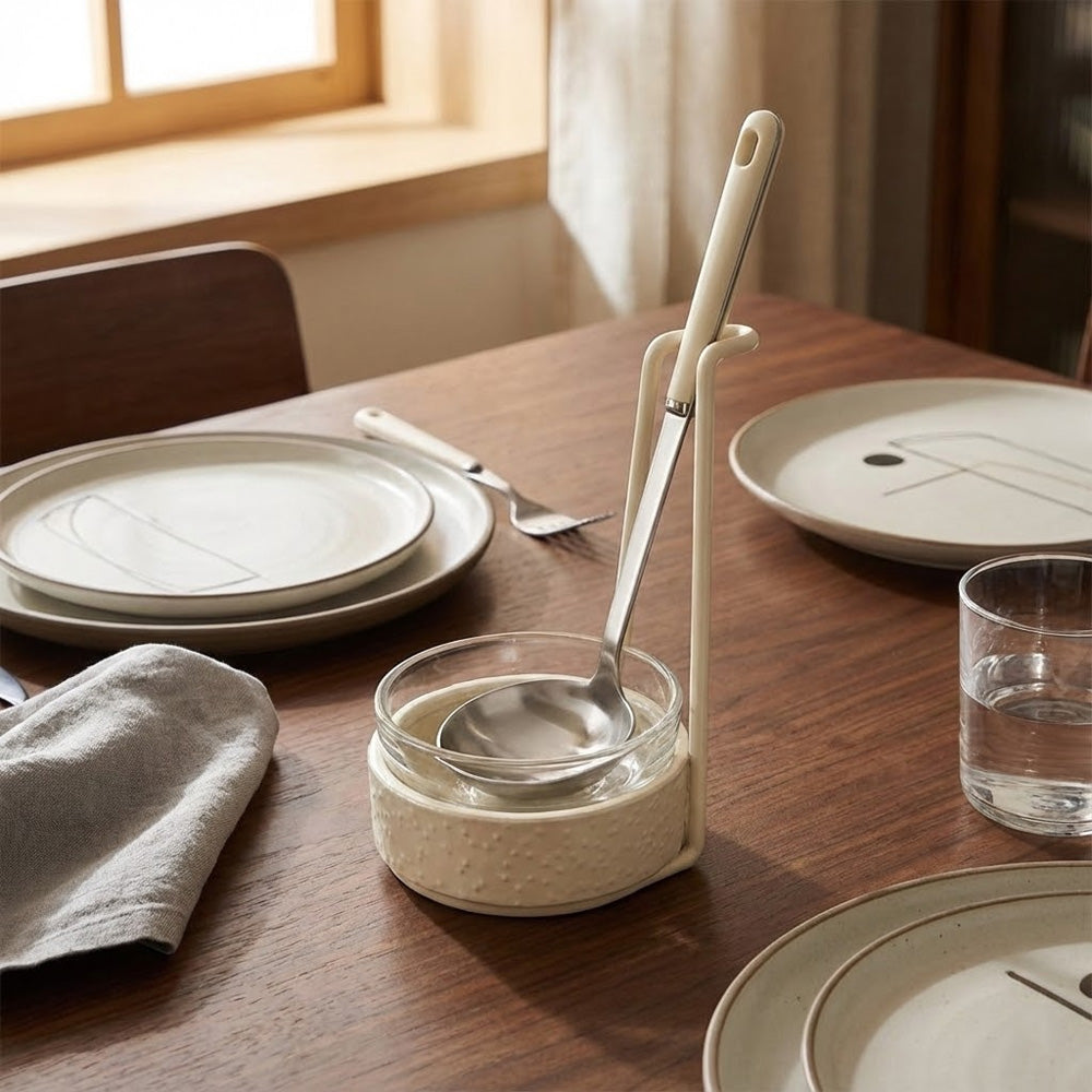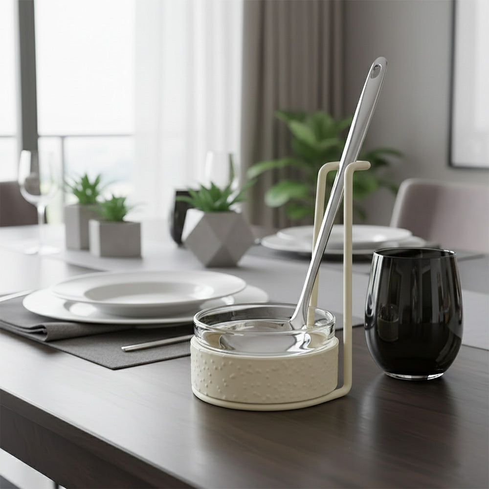 اجعل تجربة التقديم أكثر ترتيبًا وأناقة مع حامل الملعقة المزود بوعاء زجاجي لل. صُمم