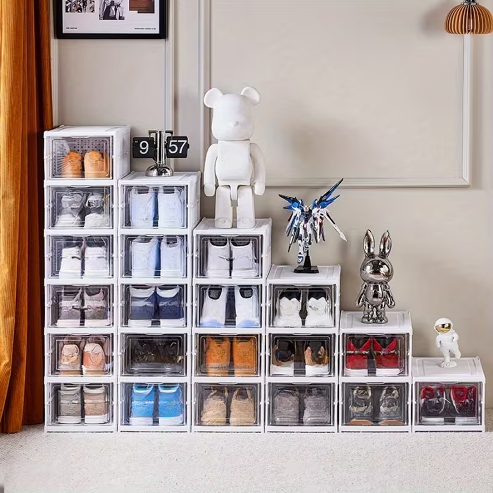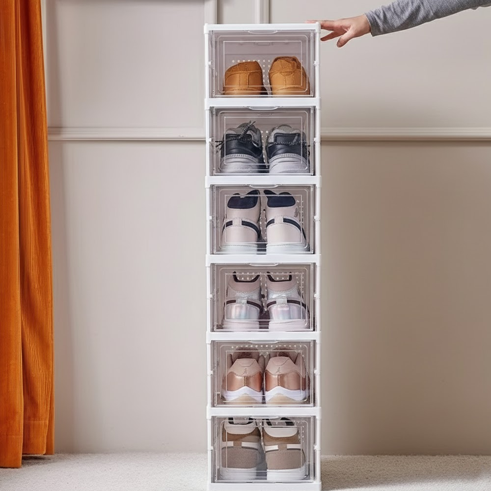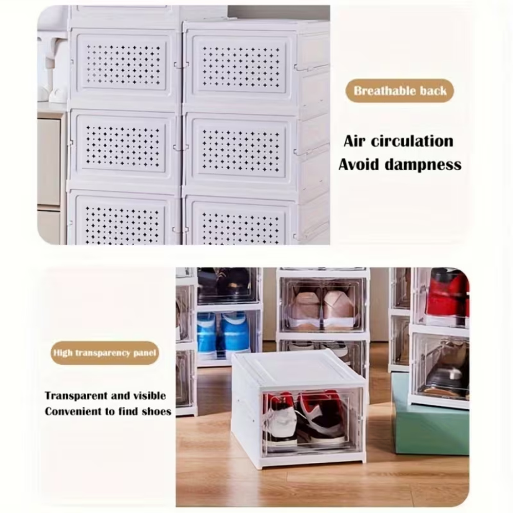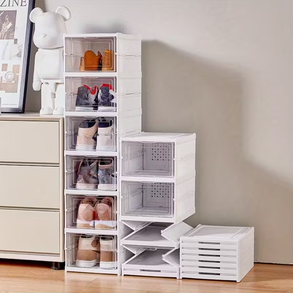 حوّل فوضى الأحذية إلى ترتيب مثالي مع صناديق تخزين الأحذية القابلة للطي، الحل الأمثل لحفظ أحذيتك بطريقة أنيقة، محمية، وسهلة الوصول.