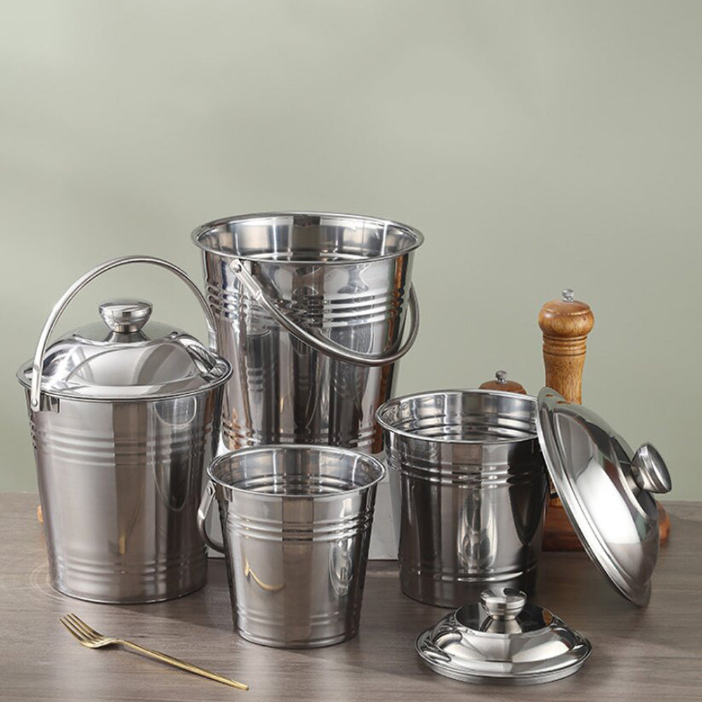 حافظ على تنظيم مطبخك ومنطقة التخزين لديك مع دلو التخزين المتين المصنوع من الفولاذ المقاوم للصدأ، والمصمم للاستخدام اليومي. مصنوع من فولاذ عالي الجودة، فهو مقاوم للصدأ، ومتين، وسهل التنظيف.