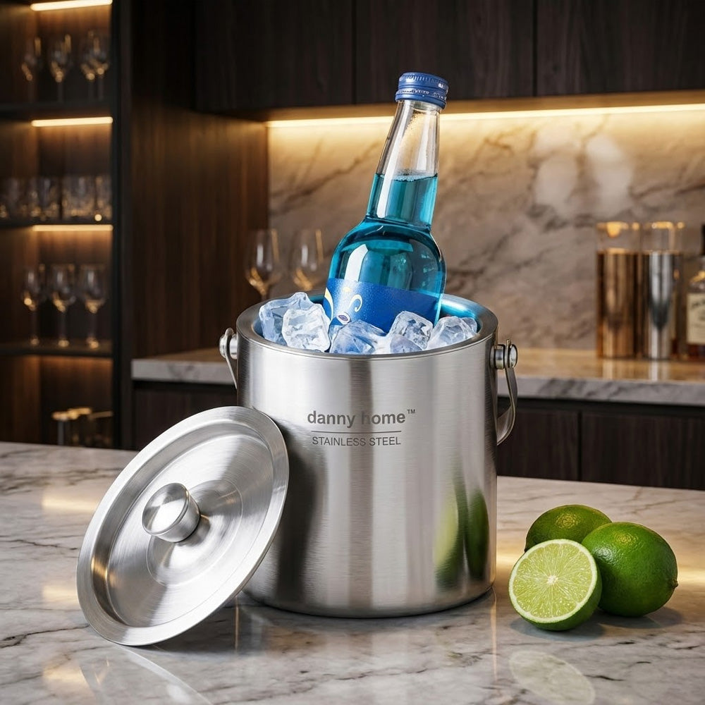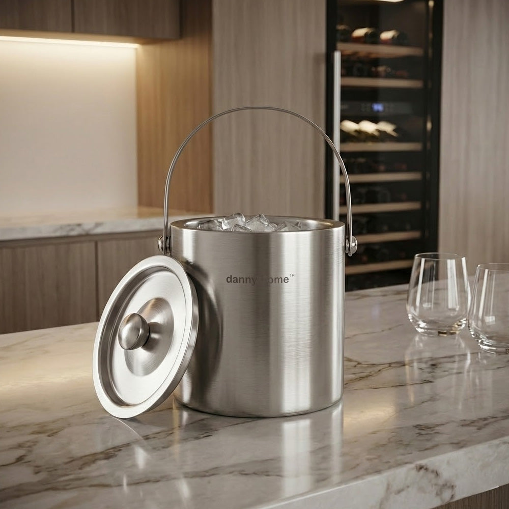دلو الثلج المصنوع من الفولاذ المقاوم للصدأ من داني هوم هو إضافة أنيقة وعملية لحانات المنازل والحفلات والتجمعات. مصنوع من الفولاذ المقاوم للصدأ عالي الجودة، ويتميز بتصميم معزول بجدار مزدوج يساعد على الحفاظ على برودة الثلج لفترة أطول. يأتي الدلو مع غطاء مطابق للحد من ذوبان الثلج والحفاظ على النظافة، بالإضافة إلى مقبض متين لسهولة الحمل.
