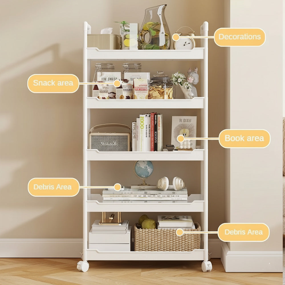يناسب تصميمه الطويل والنحيف الزوايا والمساحات الصغيرة والضيقة بشكل مثالي، مما يمنحك مساحة تخزينية واسعة دون أن يشغل مساحة كبيرة. مزود بعجلات دوارة سلسة بزاوية 360 درجة، يتحرك هذا الرف بسلاسة من غرفة إلى أخرى، مما يجعله مثاليًا لغرف النوم، والمطابخ، وغرف المعيشة، والمكاتب، والمساكن الجامعية.