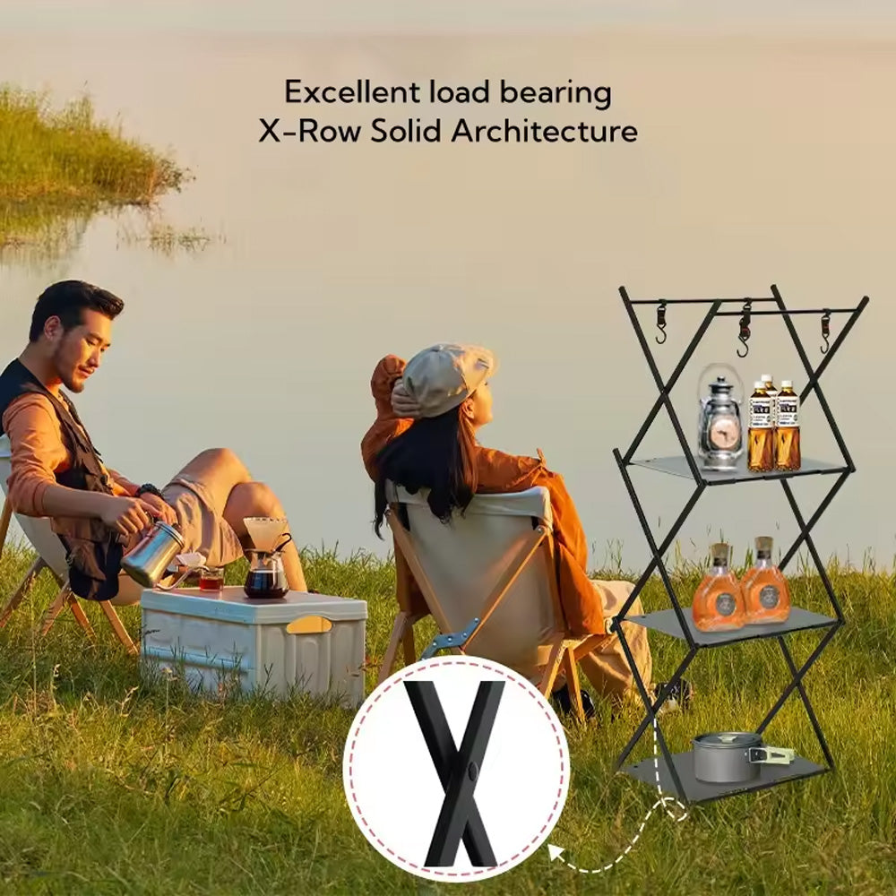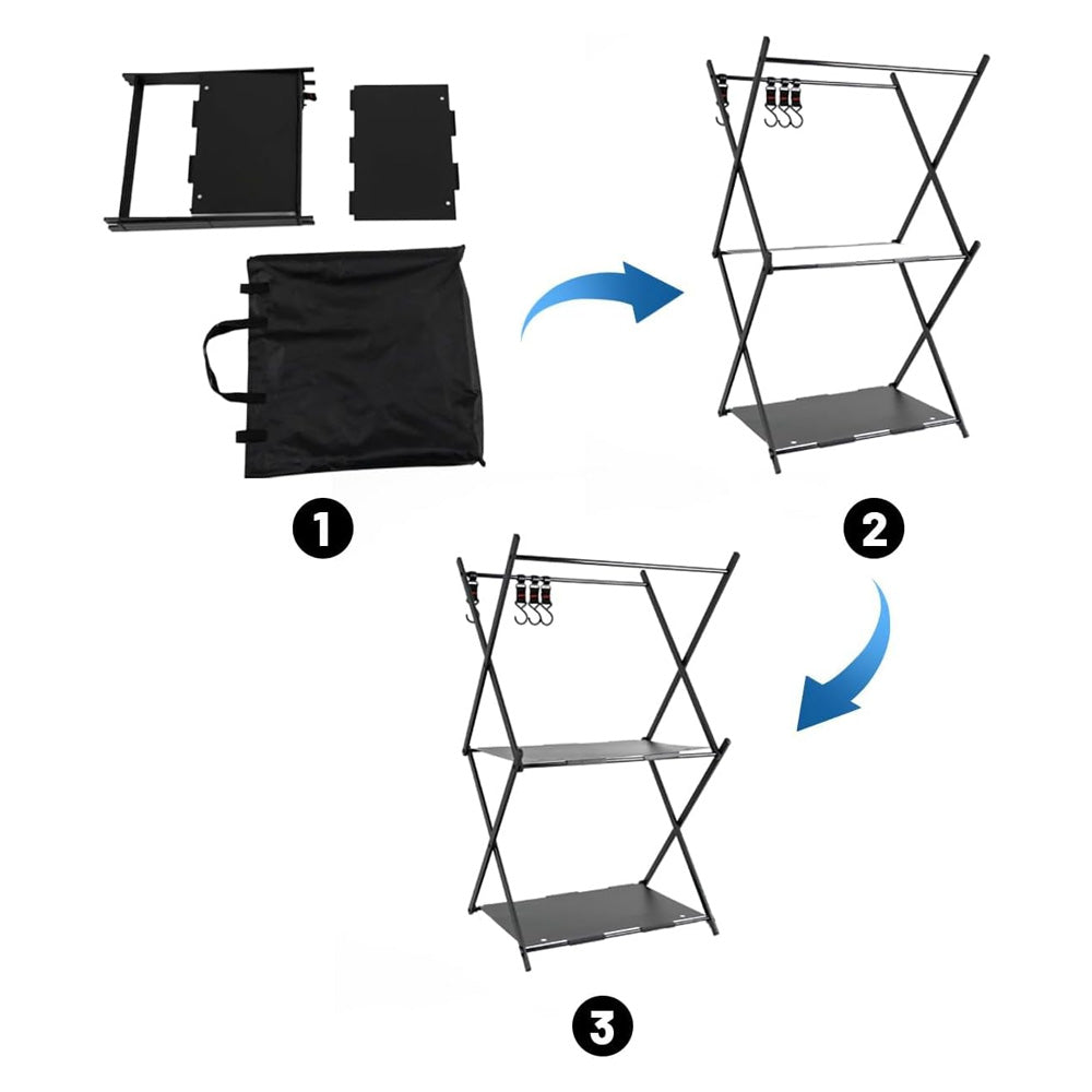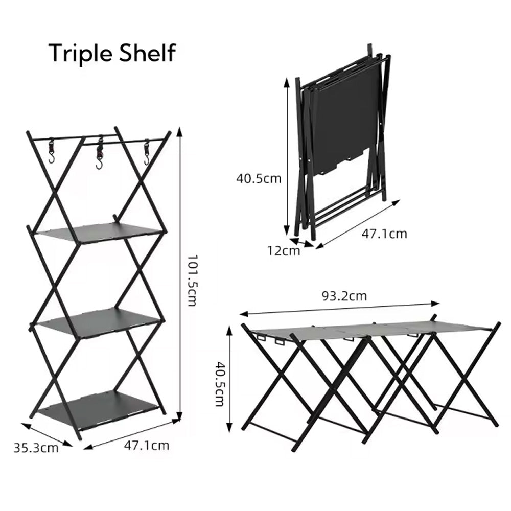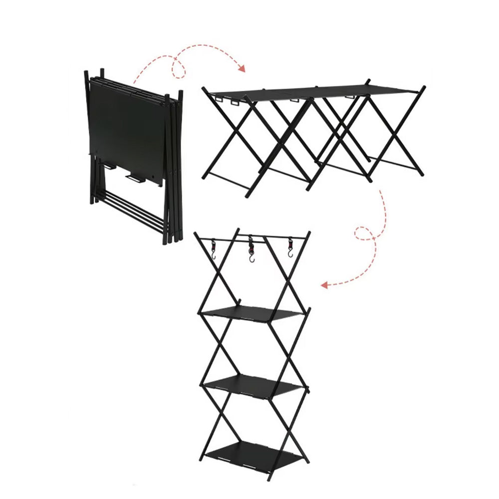 متعدد الأغراض: رف التخزين هذا المكون من طبقتين وثلاث طبقات مناسب للاستخدام المنزلي والتخييم في الهواء الطلق. مناسب للمطبخ وغرفة النوم وغرفة المعيشة والدراسة والشرفة وما إلى ذلك للأغراض الصغيرة التي تحتاج إلى تخزين وتنظيم وعرض. في الأنشطة الخارجية، مناسب بشكل خاص لوضع الأدوات والطعام والأواني وما إلى ذلك أثناء النزهات والشواء والتخييم.
