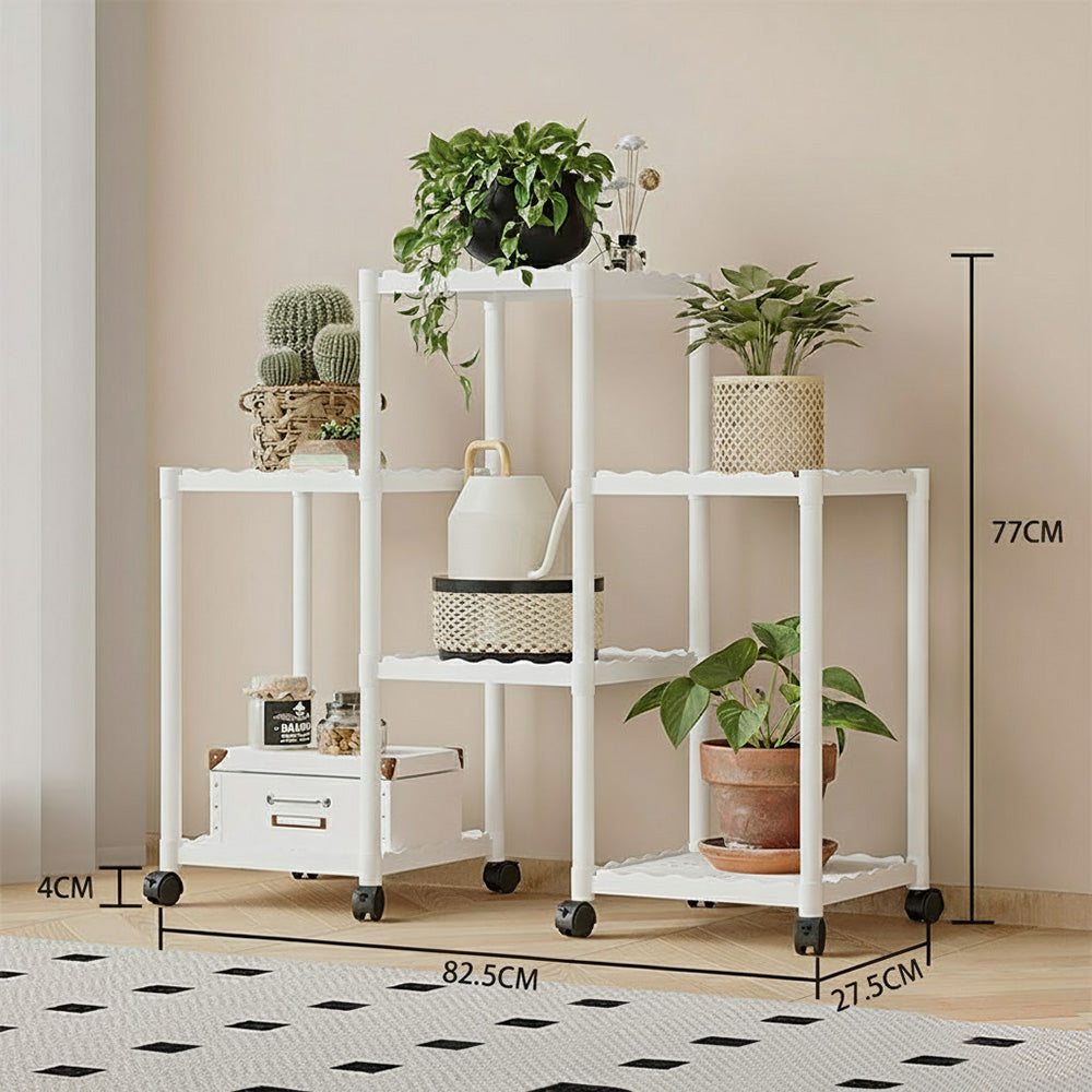 نظّم مساحتك بأناقة مع رفّ النباتات والتخزين المدمج متعدد الطبقات. صُمّم هذا الرفّ متعدد الاستخدامات بلمسة نهائية بيضاء عصرية، ويتميز بتصميم متدرّج يضفي لمسةً جماليةً ساحرة، مع توفير مساحة واسعة للنباتات، وعناصر الديكور، والكتب، وسلال التخزين.