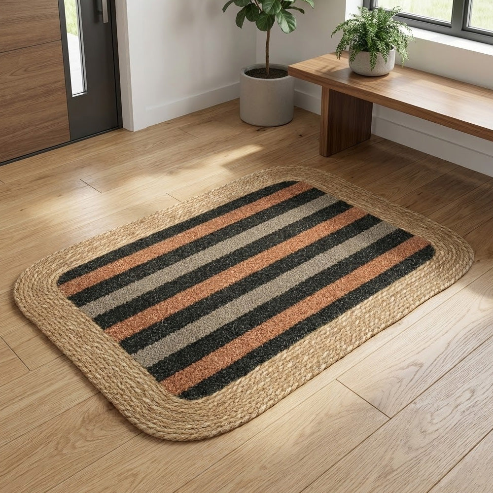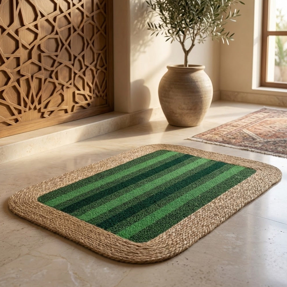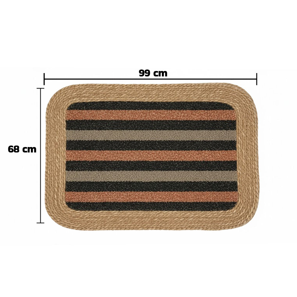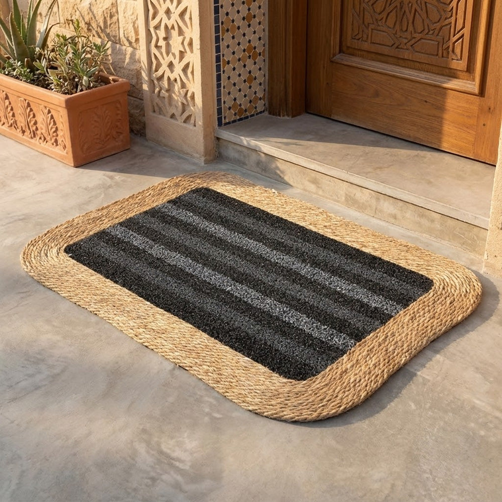سجادة باب أنيقة ومتينة، مصنوعة من حواف مضفرة من الجوت الطبيعي ونسيج مركزي ذي ملمس مميز. مصممة لحجز الأوساخ والغبار بكفاءة، مما يساعد على الحفاظ على نظافة الأرضيات ويضفي لمسة دافئة وريفية على مدخل منزلك. يضمن ظهرها المانع للانزلاق ثباتًا أفضل، مما يجعلها مناسبة للاستخدام اليومي عند الأبواب، والمطابخ، والشرفات، أو المداخل الداخلية. متوفرة بألوان متعددة لتناسب مختلف أنماط الديكور.