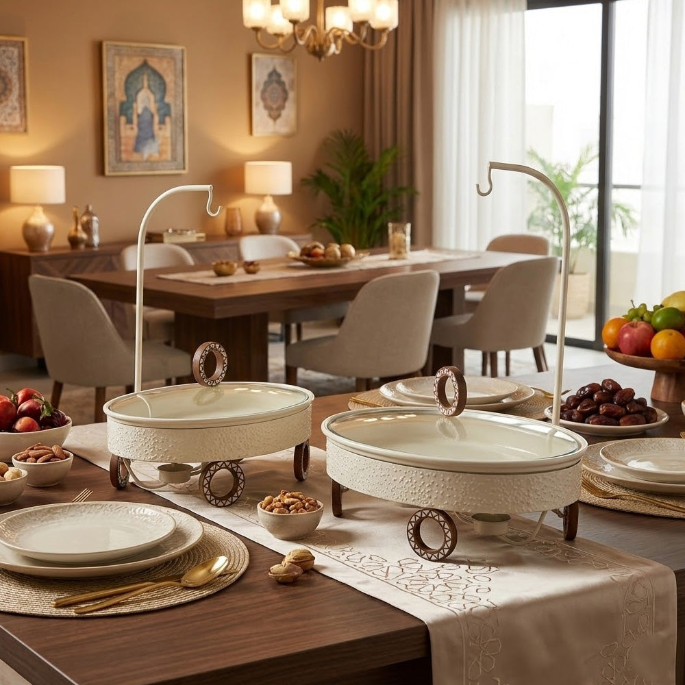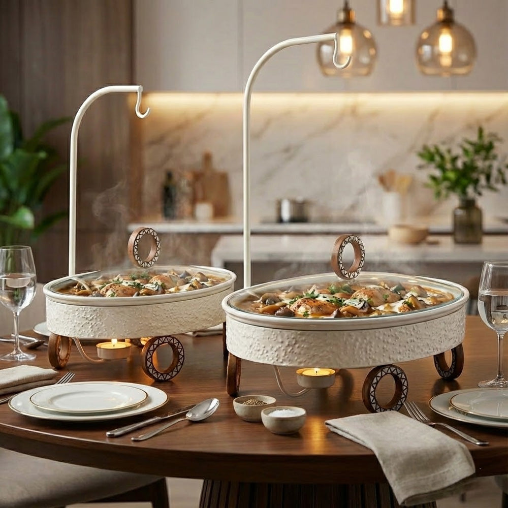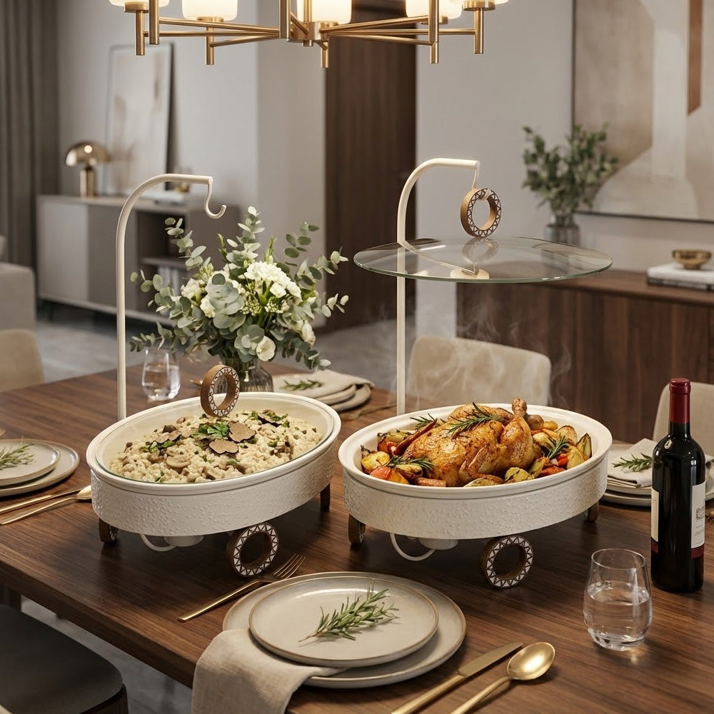 أضف لمسةً من الرقي والدفء إلى مائدة طعامك مع طبق التسخين البيضاوي، المصمم لمن يُقدّرون الأناقة والعملية. مصنوع من هيكل من الفولاذ المقاوم للصدأ المطروق، وطبق داخلي من السيراميك المقاوم للحرارة، وحامل أنيق مرتفع، يضمن هذا الطبق بقاء وجباتك ساخنةً تمامًا ومُقدّمةً بشكل جميل خلال التجمعات أو وجبات العشاء العائلية.