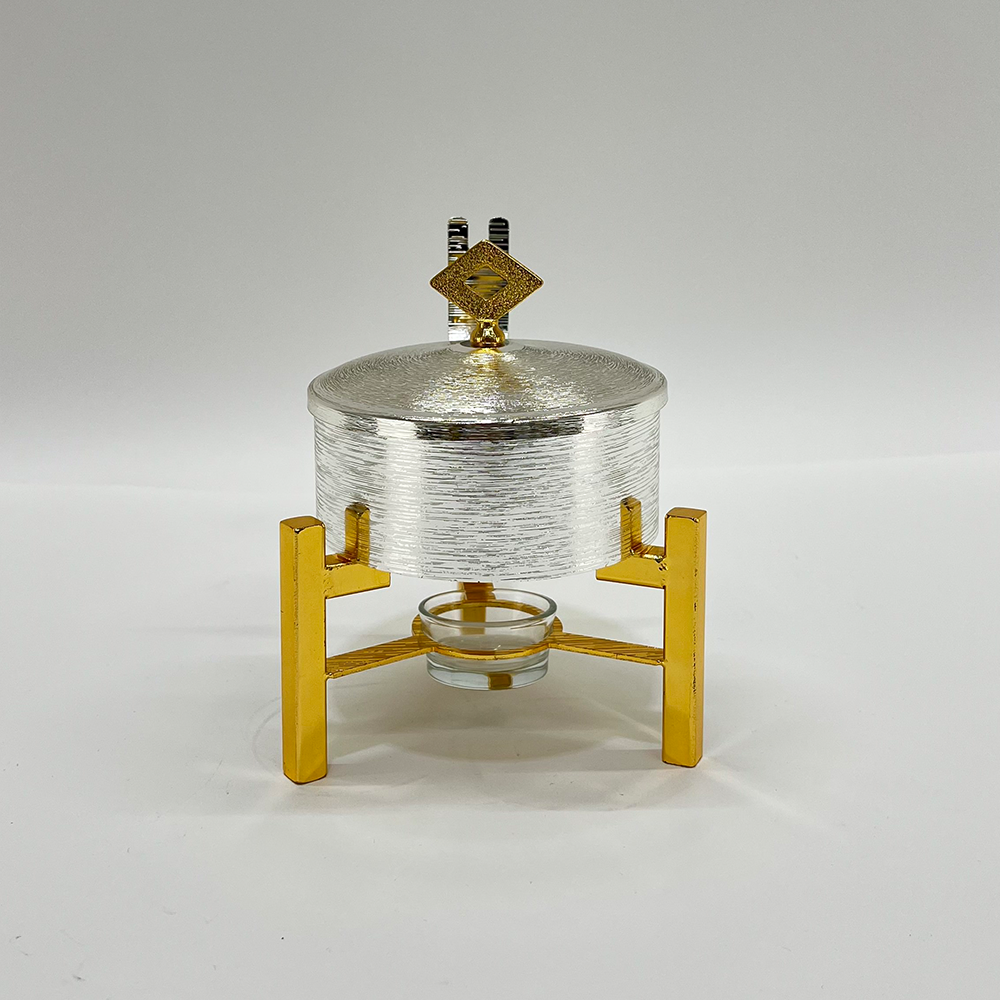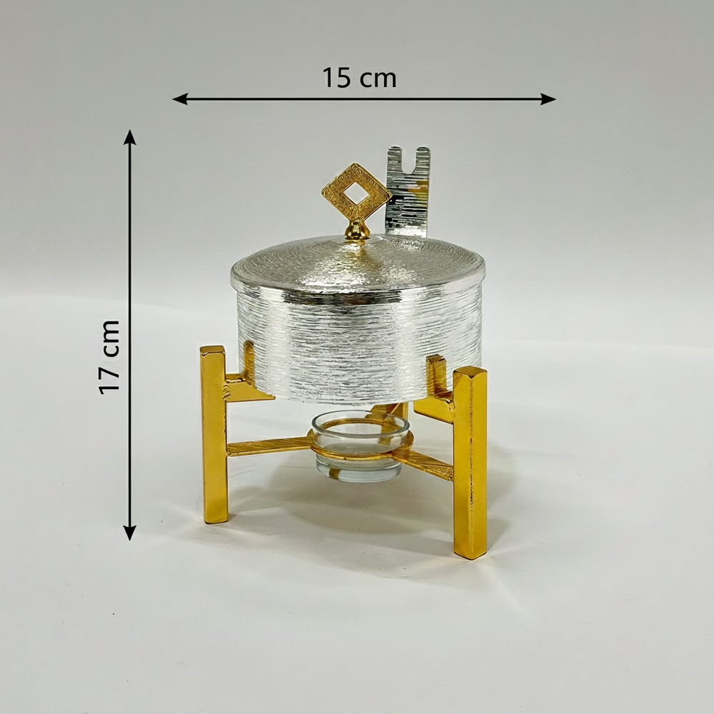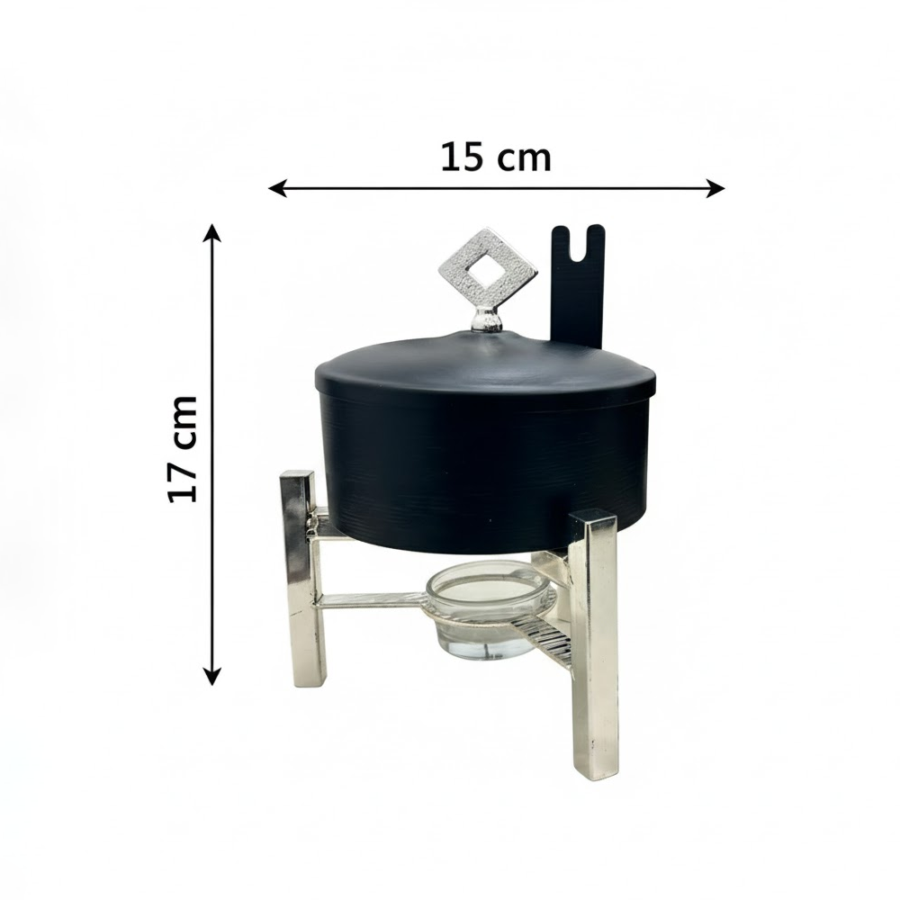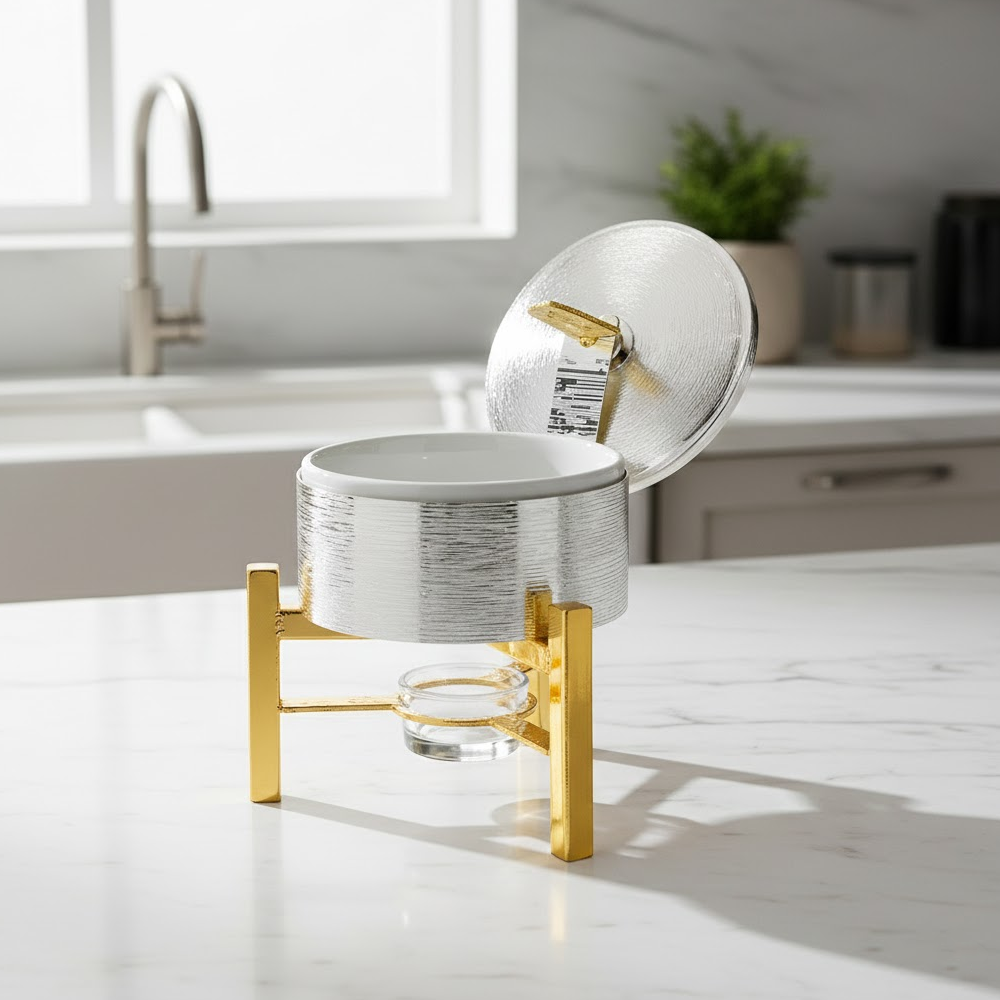 حفاظ مثالي على الحرارة: مزود بقاعدة سفلية مخصصة لوضع شمعة صغيرة (Tealight)، مما يضمن بقاء الطعام دافئاً طوال فترة التقديم دون أن يحترق.