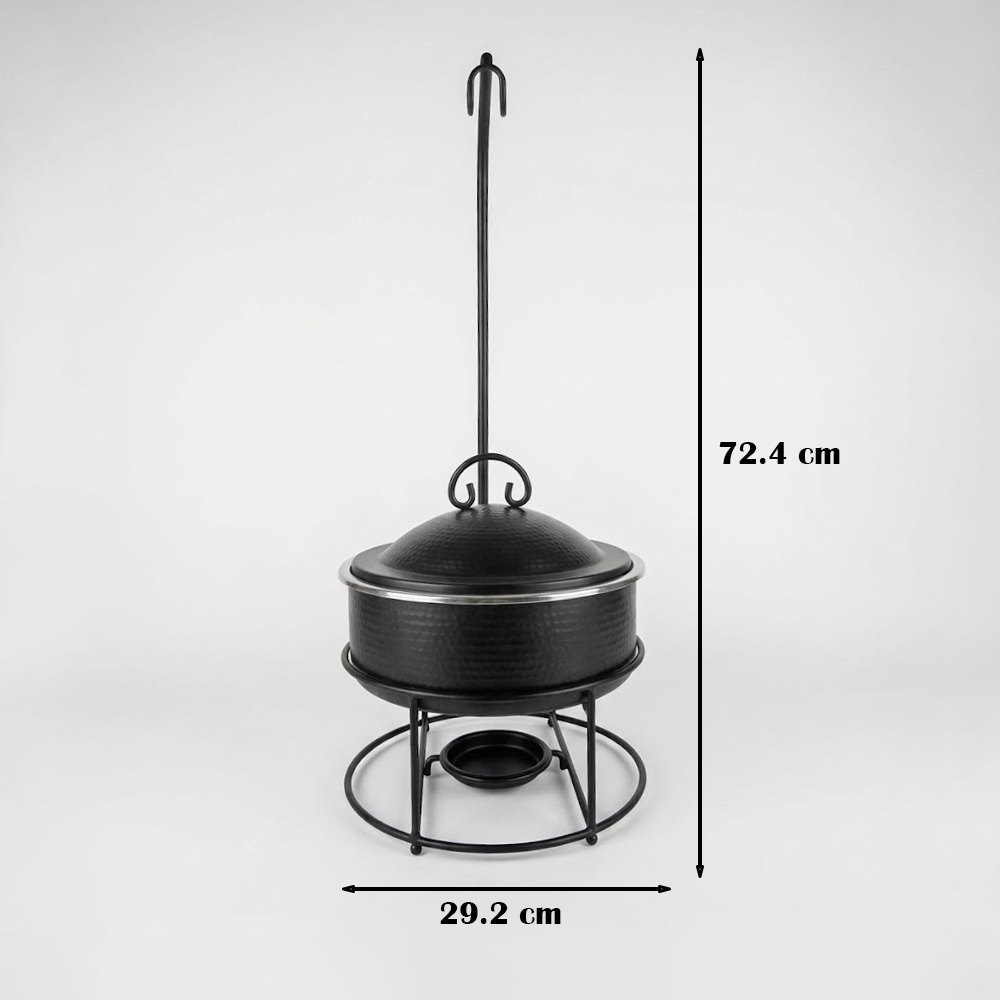 الوعاء مصنوع من معدن عالي الجودة بنقشة أنيقة، مع غطاء محكم يساعد على الحفاظ على حرارة الطعام ونكهته لفترة أطول.