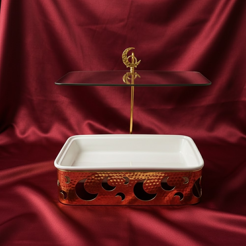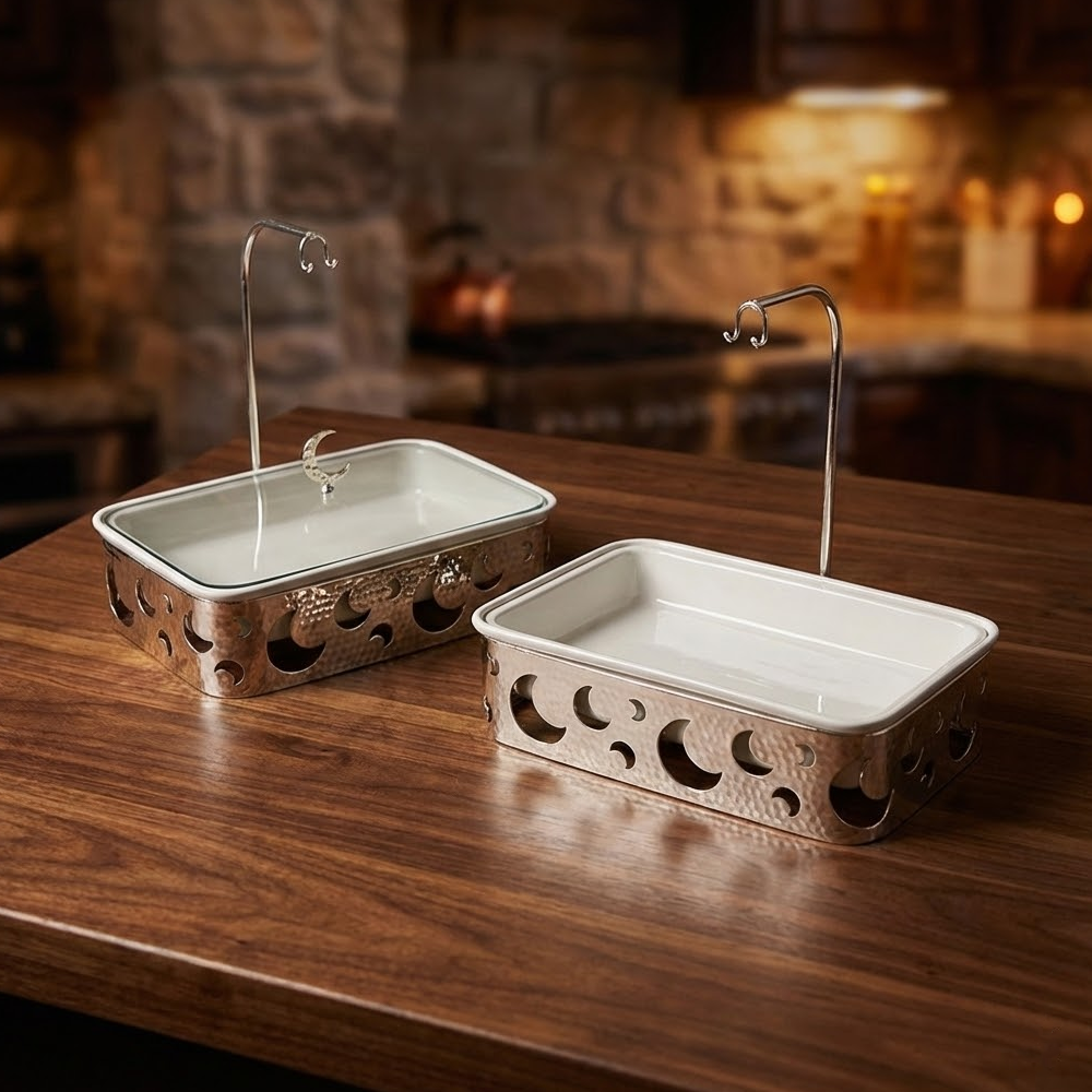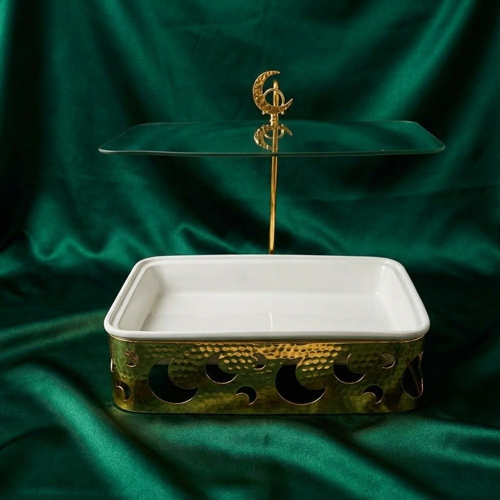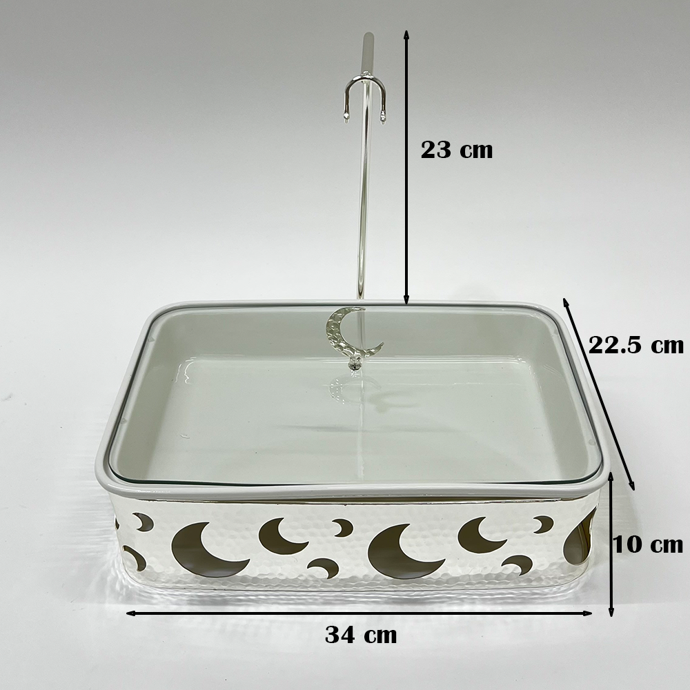 الغطاء الزجاجي الشفاف يمنحك رؤية واضحة لمحتوى الوعاء مع المحافظة على الطعام دافئًا ونظيفًا، كما أن التصميم العملي يجعله مناسبًا لتقديم الأرز، اللحوم، المعجنات، والحلويات بأسلوب أنيق وجذاب. مثالي للاستخدام اليومي أو في العزائم والولائم الرسمية.