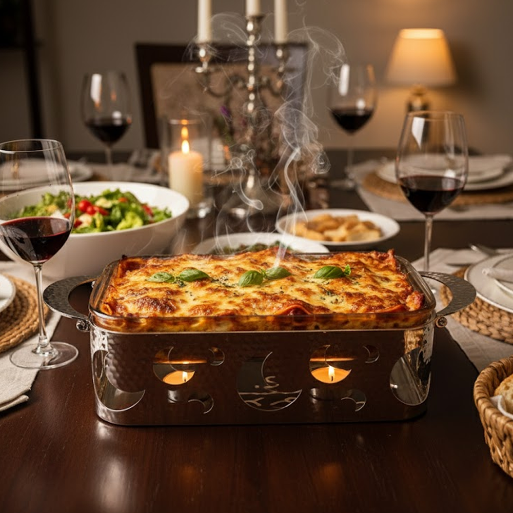 إمكانية وضع شموع تسخين أسفل الصينية لإبقاء الطعام ساخنًا أثناء التقديم.