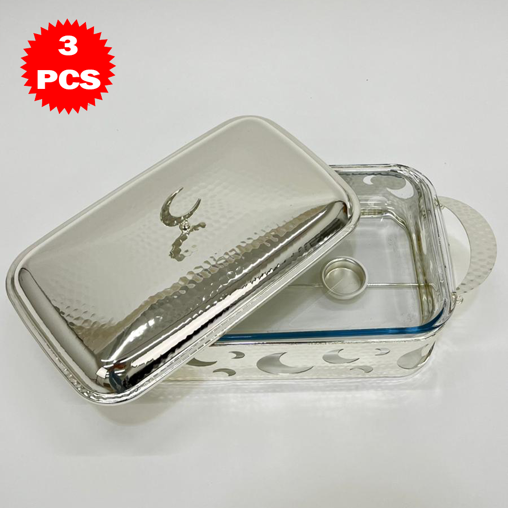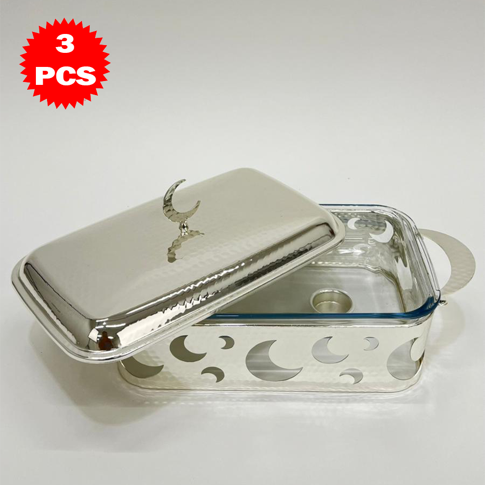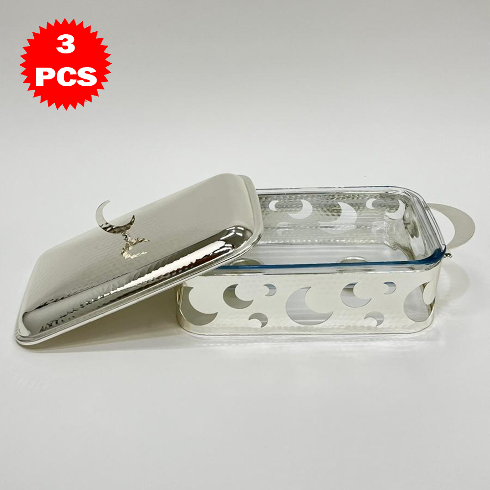 حافظة تقديم طعام فاخر مع صينية بايركس – 3 قطع