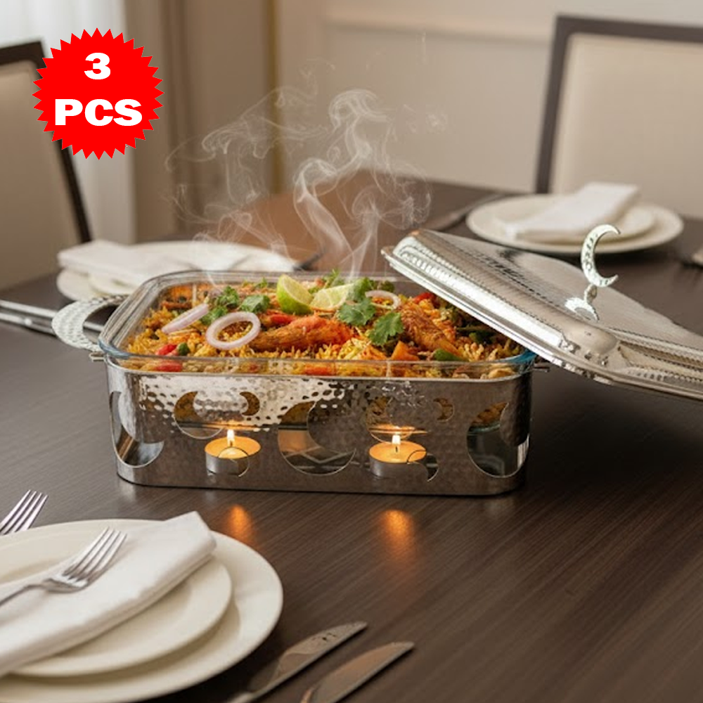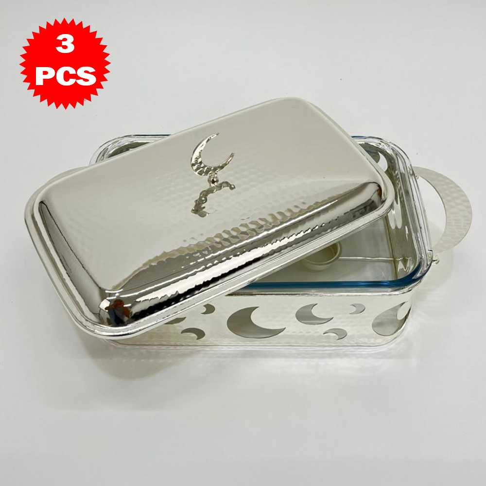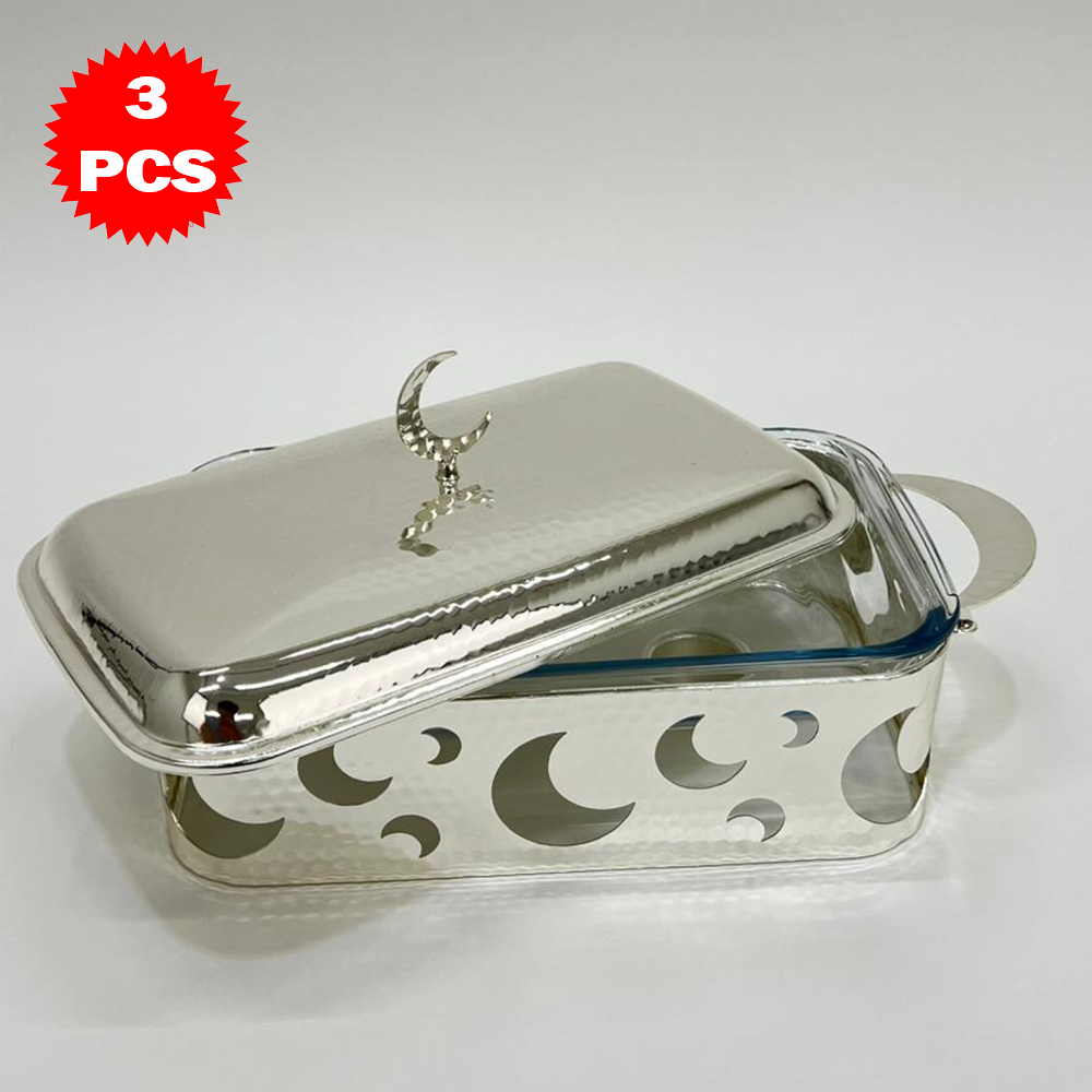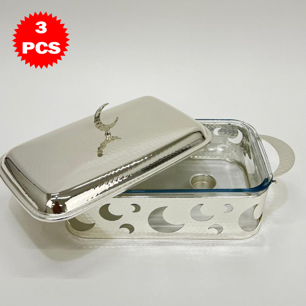حافظة تقديم طعام فاخر مع صينية بايركس – 3 قطع