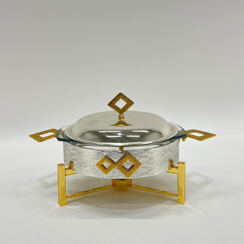 تسخين هادئ: يعتمد على شموع "التيه لايت" (Tea Lights) الموجودة في القاعدة للحفاظ على حرارة الطعام بلطف دون طبخه بشكل زائد.