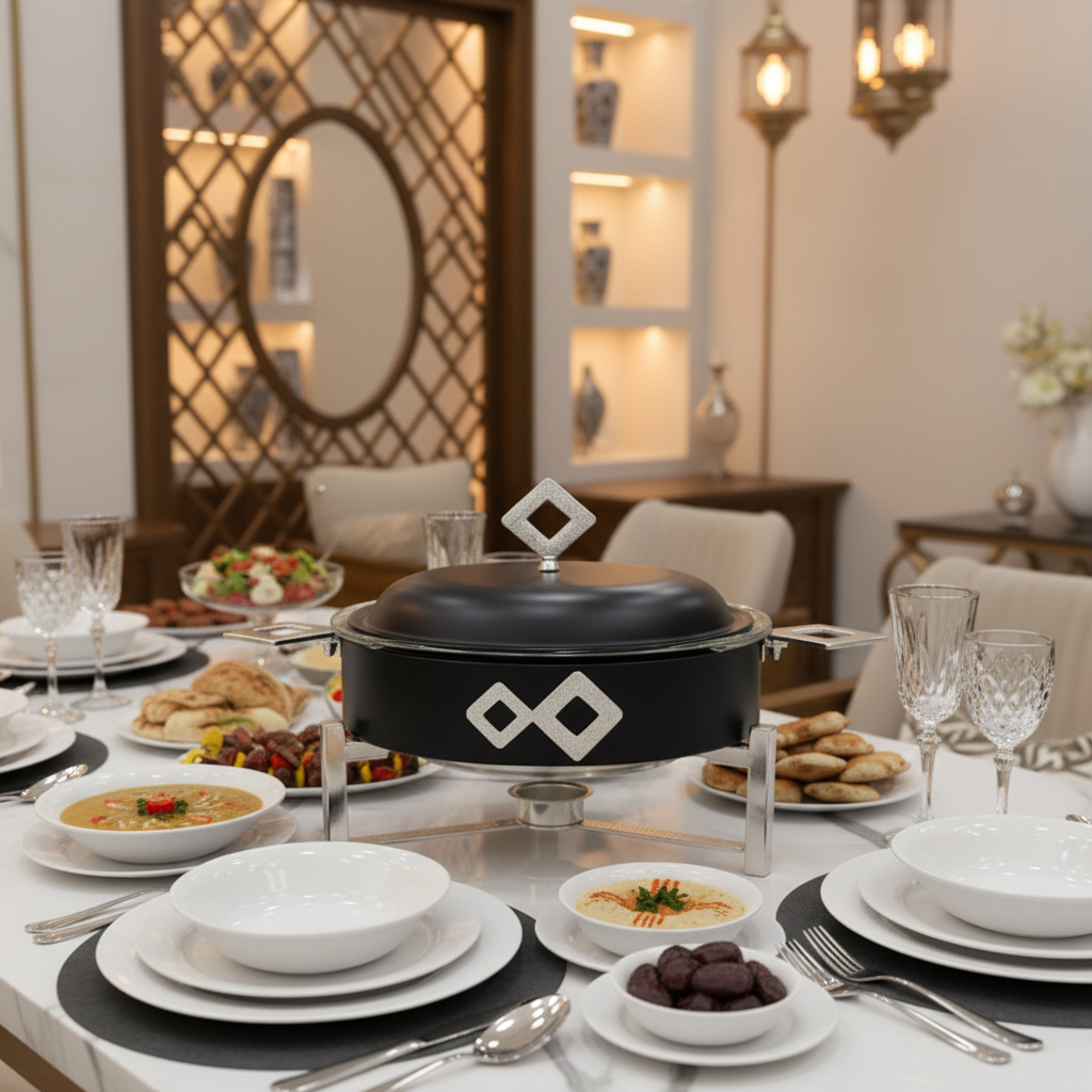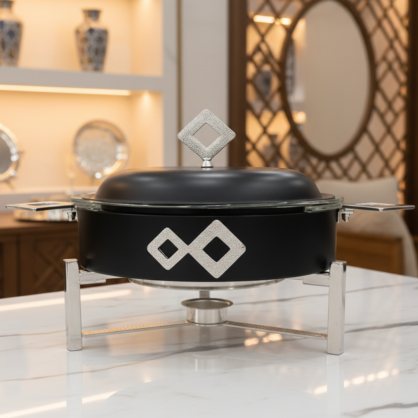 أناقة عملية: يجمع بين وظيفة الحفاظ على حرارة الطعام وجمالية قطعة الديكور الفاخرة على المائدة.