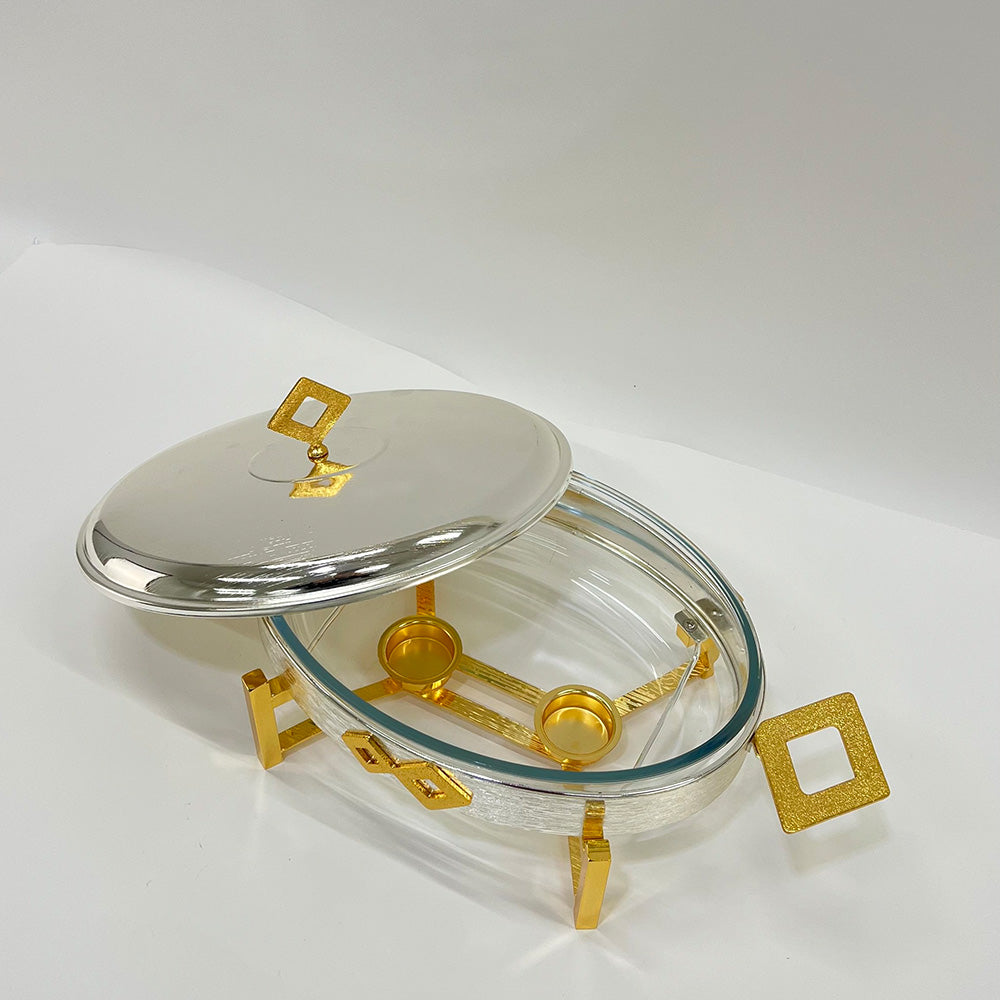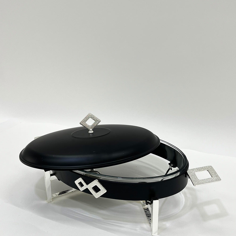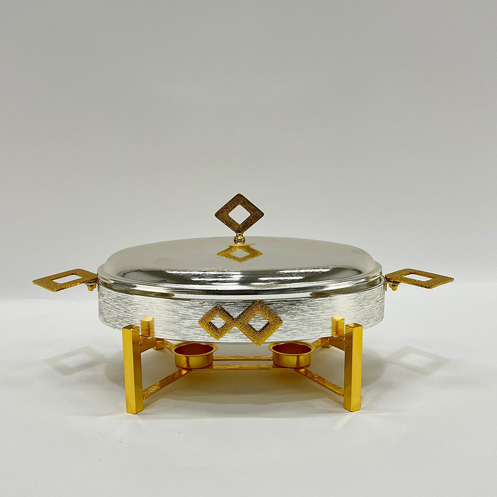 سخان طعام فاخر للتقديم (بوفيه) يعمل بالشموع – تصميم ماسي هندسي