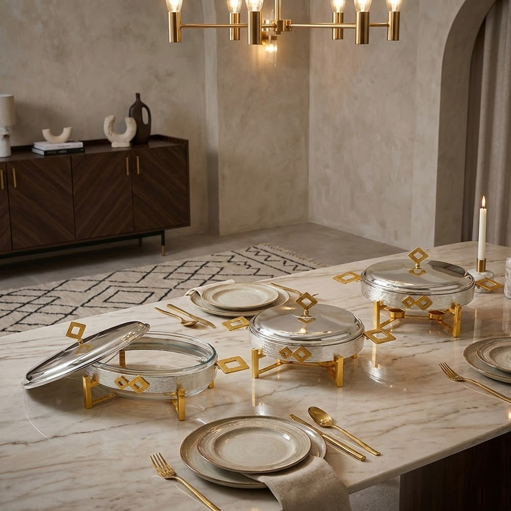 أناقة عملية: يجمع بين وظيفة الحفاظ على حرارة الطعام وجمالية قطعة الديكور الفاخرة على المائدة.