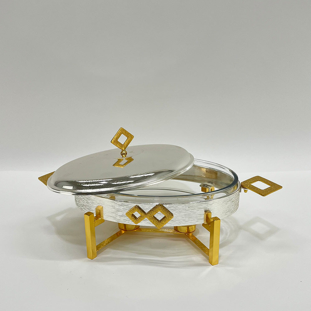 سخان طعام فاخر للتقديم (بوفيه) يعمل بالشموع – تصميم ماسي هندسي