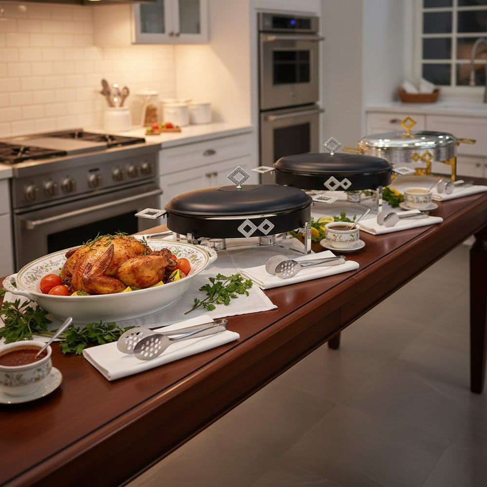 تسخين هادئ: يعتمد على شموع "التيه لايت" (Tea Lights) الموجودة في القاعدة للحفاظ على حرارة الطعام بلطف دون طبخه بشكل زائد.