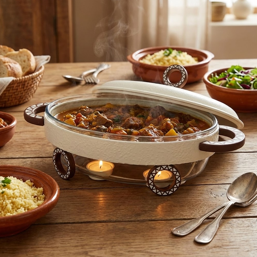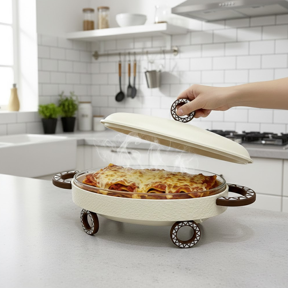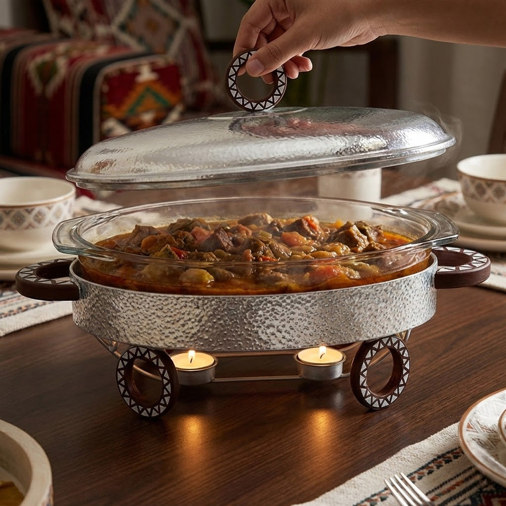 سخان طعام معدني مع طبق زجاجي 3 لتر
