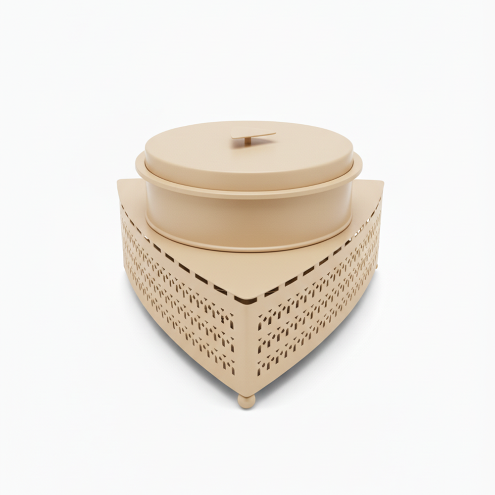 اجعل كل وجبة أكثر أناقة مع طقم تقديم الطعام المعدني الفاخر الذي يتضمن صينية مثلثية مزخرفة مع وعاء كبير مزود بغطاء محكم للحفاظ على حرارة الطعام.