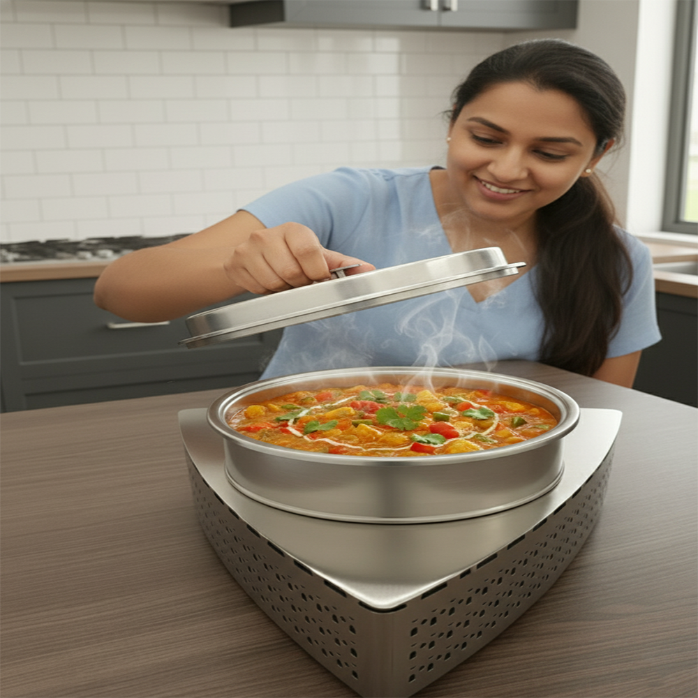اختيارك المثالي لتقديم الأطعمة الساخنة مثل الكاري والطواجن مع نكهة لا تضاهى، بفضل المواد عالية الجودة المصنوعة من المعدن المقاوم للصدأ.