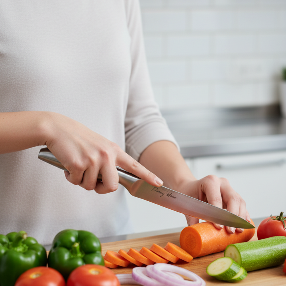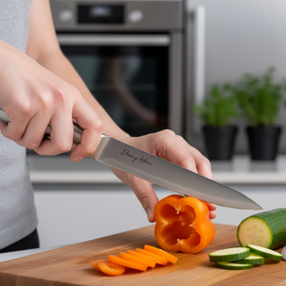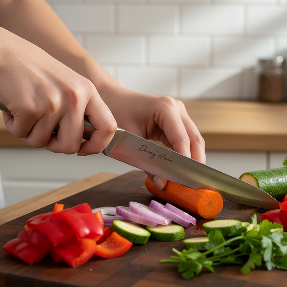 أضف لمسة من الاحترافية إلى مطبخك مع سكين Danny Home المصنوعة بالكامل من الفولاذ المقاوم للصدأ.