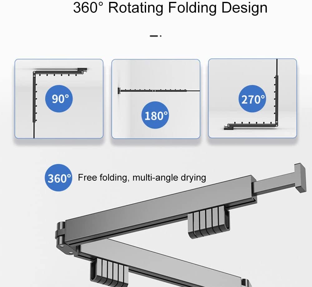 This wall mounted clothes drying rack allows you to make full use of your space, unfold when you use it, and fold it against the wall when not in use. It does not take up your space at all. It is very flexible and convenient, especially Indoors, this clothes rack will be your first choice.
