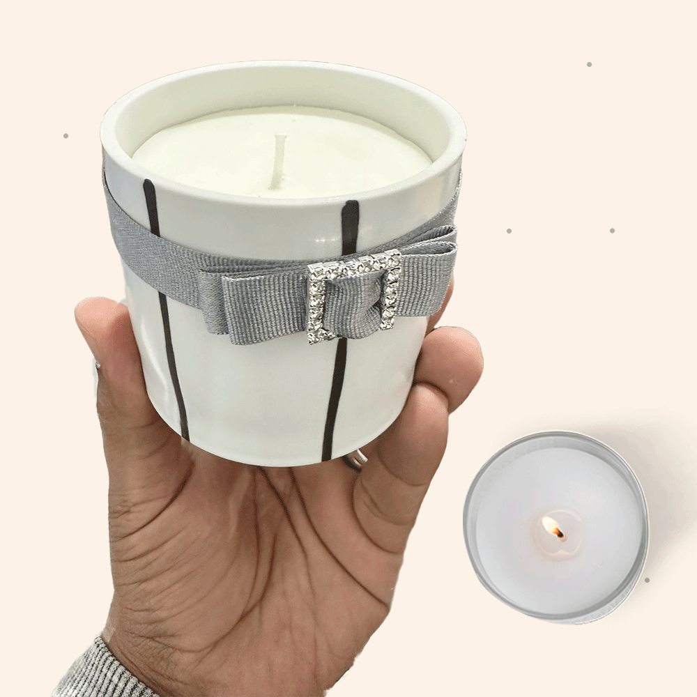 شمعة يدوية برائحة فاخرة بكوب من السيراميك